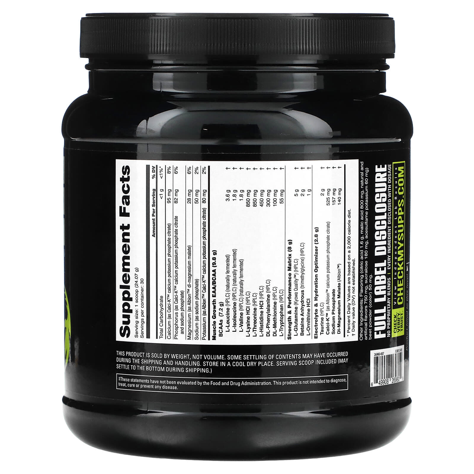 Рост мышц EAA / BCAA BCAA (7,2 г) L-лейцин (ВЭЖХ) (ферментированный естественным путем) L-изолейцин (ВЭЖХ) (ферментированный естественным путем) L-валин (ВЭЖХ) (ферментированный естественным путем) L-лизин гидрохлорид (ВЭЖХ) L-треонин (ВЭЖХ) L-гистидин гидрохлорид (ВЭЖХ) DL-фенилаланин (ВЭЖХ) DL-метионин (ВЭЖХ) L-триптофан (ВЭЖХ) | 9,8 г 3,6 г 1,8 г 1,8 г 850 мг 850 мг 450 мг 300 мг 100 мг 55 мг | † † † † † † † † † † |