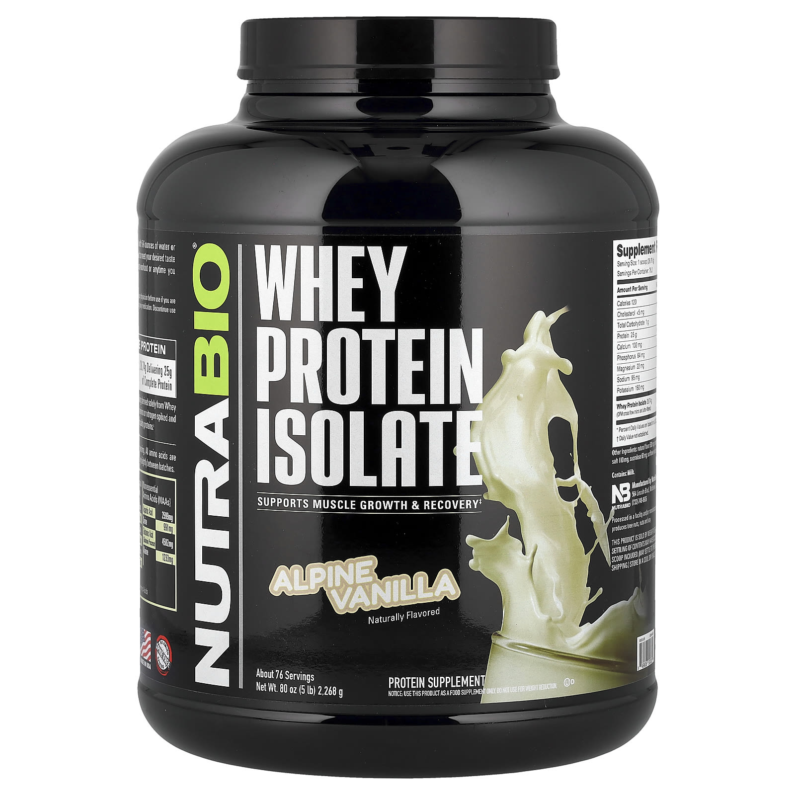 NutraBio, Изолят сывороточного протеина, альпийская ваниль, 2268 г (5 фунтов)
