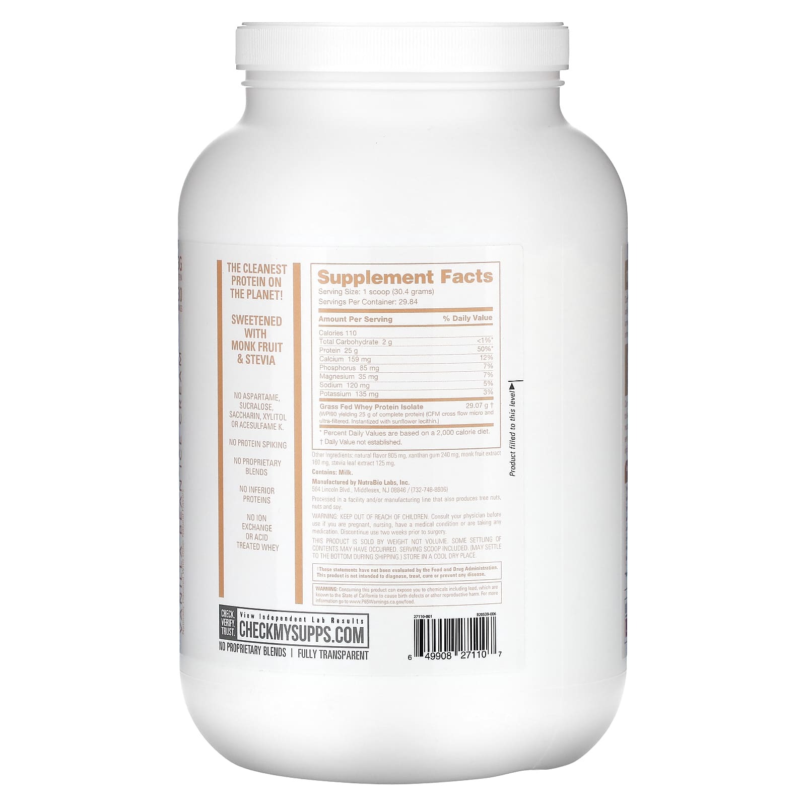 Каждая порция содержит 25 граммов полноценного протеина, полученного исключительно из изолята сывороточного протеина. Эта добавка НЕ содержит аминокислот или азота и не содержит концентрата сыворотки или других белков более низкого качества.