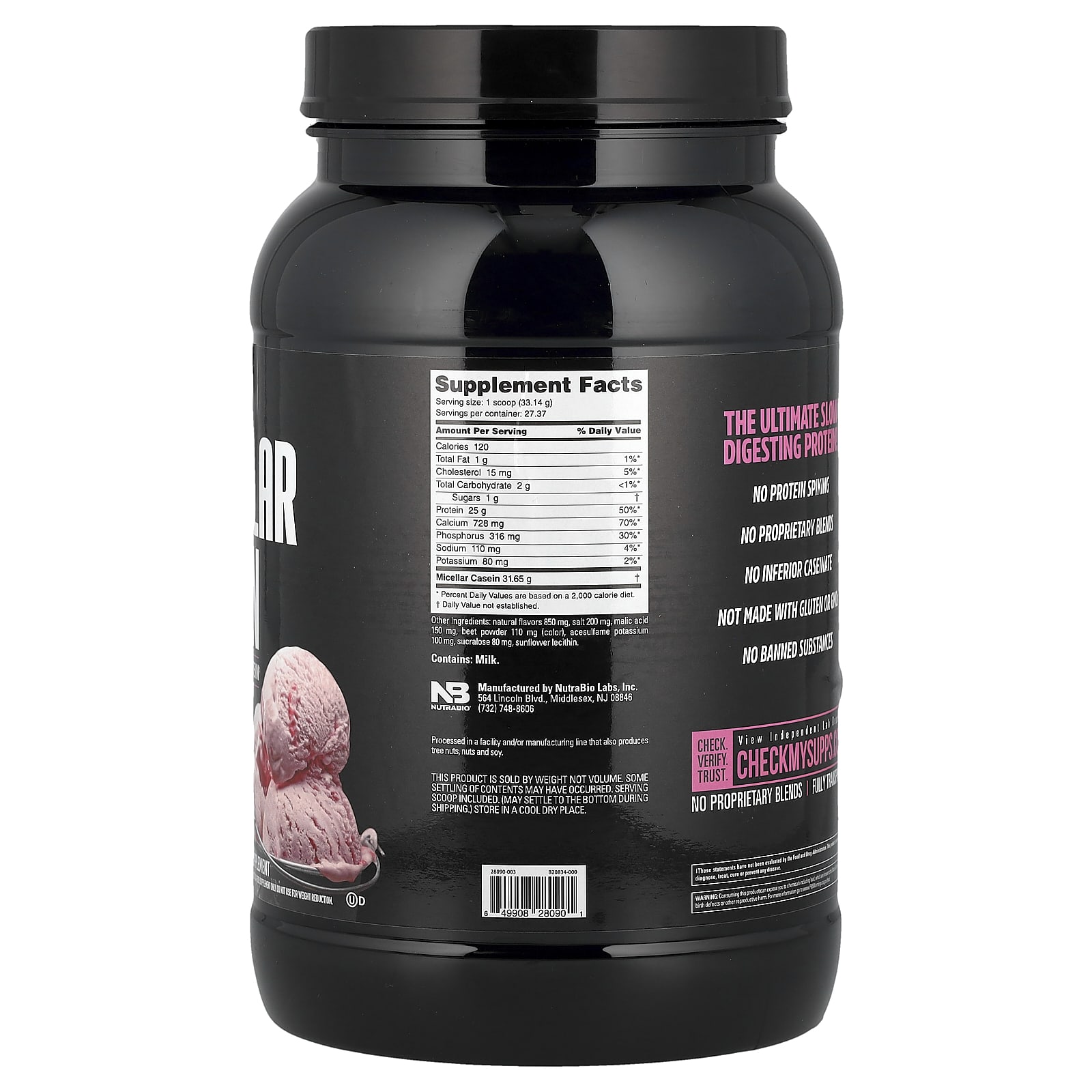 Мицеллярный казеин NutraBio - это медленно усваиваемый протеин, который обеспечивает стабильный поток аминокислот в клетки мышц в течение 8 часов. Медленное высвобождение обеспечивает положительное удержание азота в мышцах в течение гораздо более длительного времени по сравнению с сывороточным протеином.