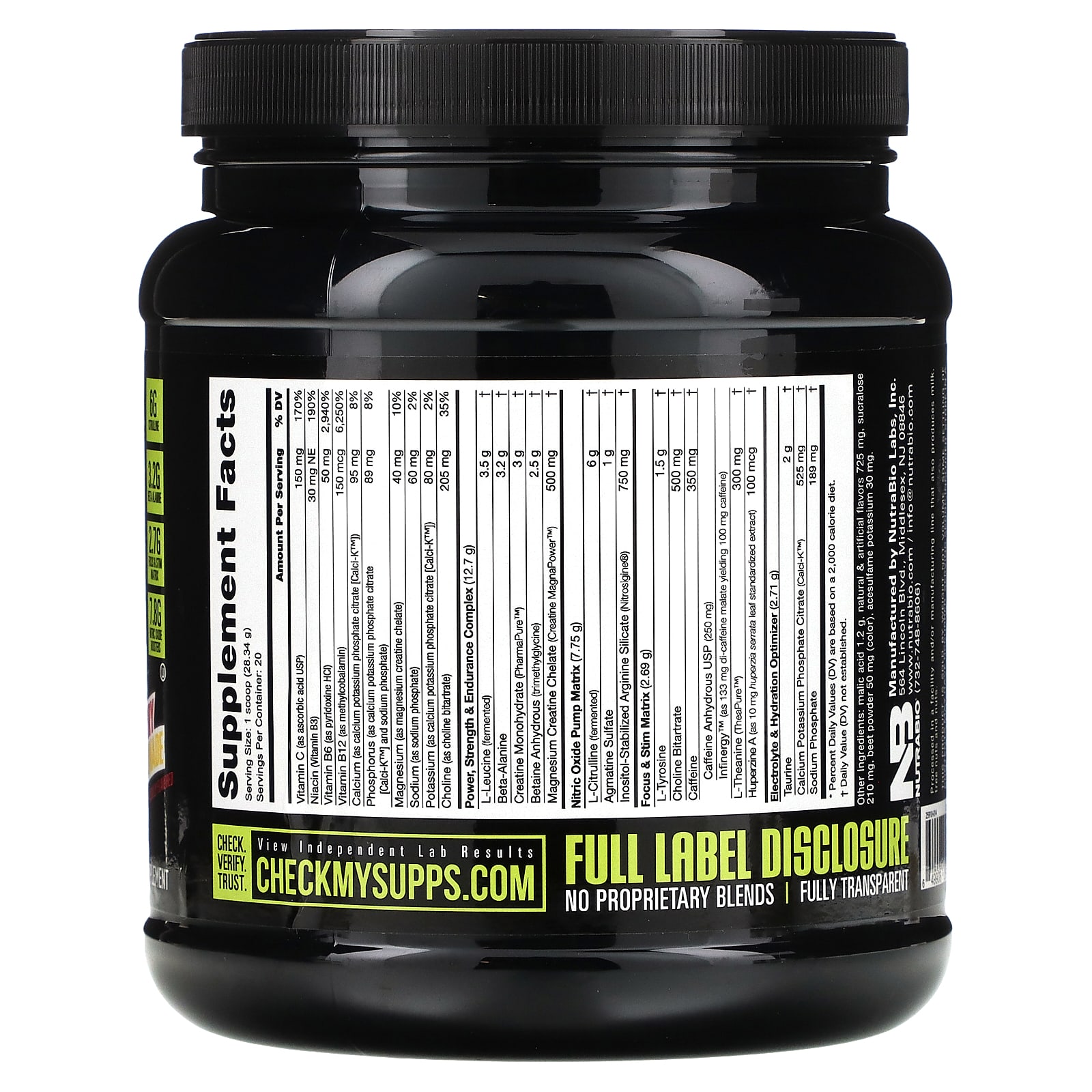 Хранить в недоступном для детей месте. Этот продукт не предназначен / не рекомендуется для детей младше 18 лет и лиц, чувствительных к кофеину. Проконсультируйтесь с врачом перед использованием, если вы беременны, кормите грудью, страдаете каким-либо заболеванием или принимаете какие-либо лекарства. Прием следует прекратить за две недели до планируемой хирургической операции. Не следует превышать рекомендуемую дозировку. Только для эпизодического использования. Не предназначен для использования в качестве заменителя сна. Не используйте с лекарствами, продуктами питания или напитками, содержащими кофеин, во время приема этого продукта, поскольку слишком много кофеина может вызвать нервозность, раздражительность, бессонницу и иногда учащенное сердцебиение. В случае передозировки следует немедленно обратиться за помощью к специалисту или в токсикологический центр. Немедленно прекратите использование и обратитесь к медицинскому работнику, если у вас возникнут какие-либо побочные реакции на этот продукт. В одной порции содержится 350 мг кофеина. Не употребляйте более 1 порции в день. Пейте не менее 16–32 унций воды в день при приеме креатина. Не используйте в условиях сильной жары, при нагрузке на сердечно-сосудистую систему или при обезвоживании.
