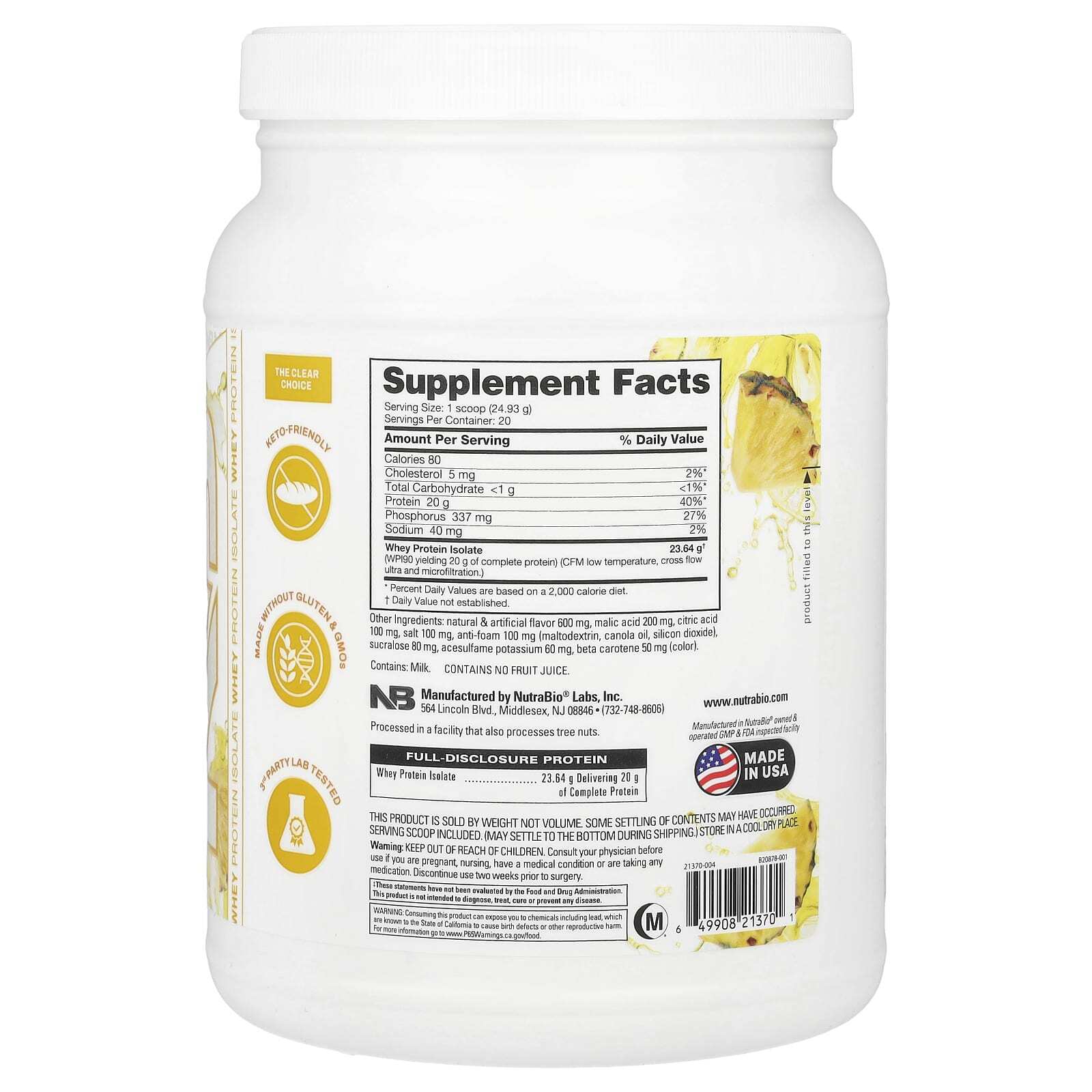 Изолят сывороточного протеина - 23,64 г, содержит 20 г полноценного протеина