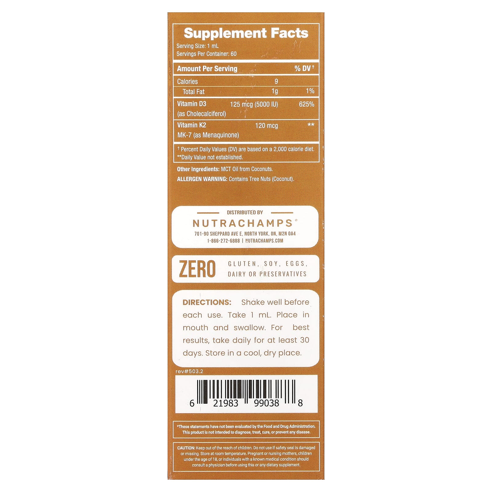 NutraChamps D3 и K2 объединяет в себе незаменимые витамины в легкоусвояемой жидкой форме. При приеме вместе эти питательные вещества работают вместе, оптимизируя поток кальция через организм и обеспечивая максимальную пользу от витамина D3.