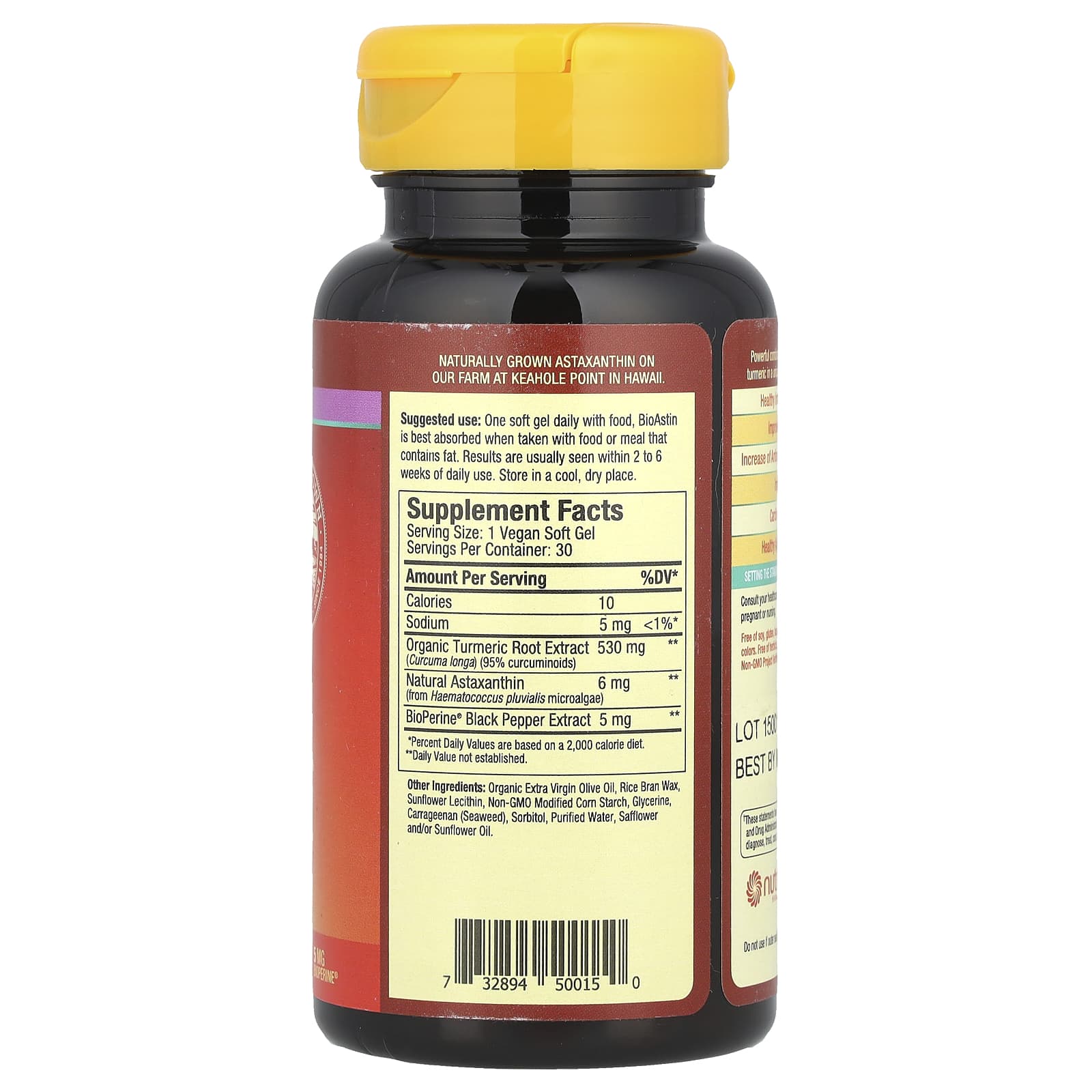 Не содержит сои, глютена, лактоза, дрожжей, пшеница, искусственных красителей. Без гербицидов и пестицидов, и изготовлено из натурального астаксантина BioAstin®, одобренного проектом Non-GMO.
