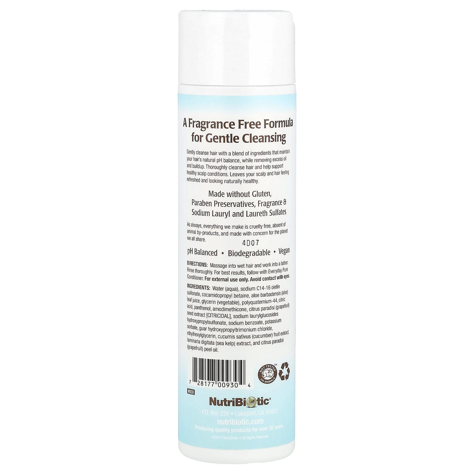 вода, натрия С14-16 олефин сульфонат, кокамидопропилбетаин, сок листьев алоэ вера (Aloe barbadensis), глицерин (растительный), поликватерниум-44, лимонная кислота, пантенол, амодиметикон, экстракт косточек грейпфрута (Citrus paradisi) [Citricidal], лаурилглюкозиды гидроксипропилсульфоната натрия, бензоат натрия, сорбат калия, гуар гидроксипропилтримония хлорид, этилгексилглицерин, экстракт плодов огурца (Cucumis sativus), порошок из экстракта морских бурых водорослей (Laminaria digitata), масло из цедры грейпфрута (Citrus paradisi).