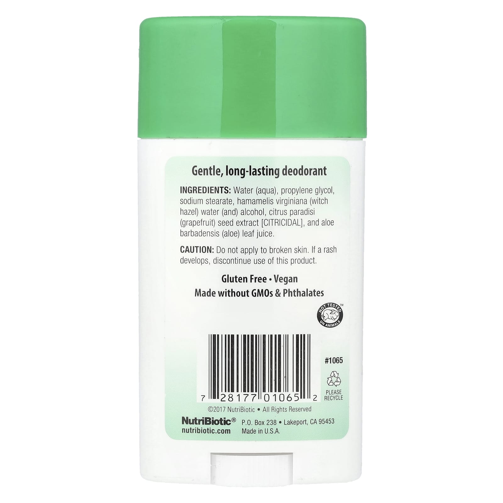 Дезодорант без запаха NutriBiotic® - это нежный дезодорант длительного действия, содержащий гамамелис, экстракт косточек грейпфрута и алоэ.