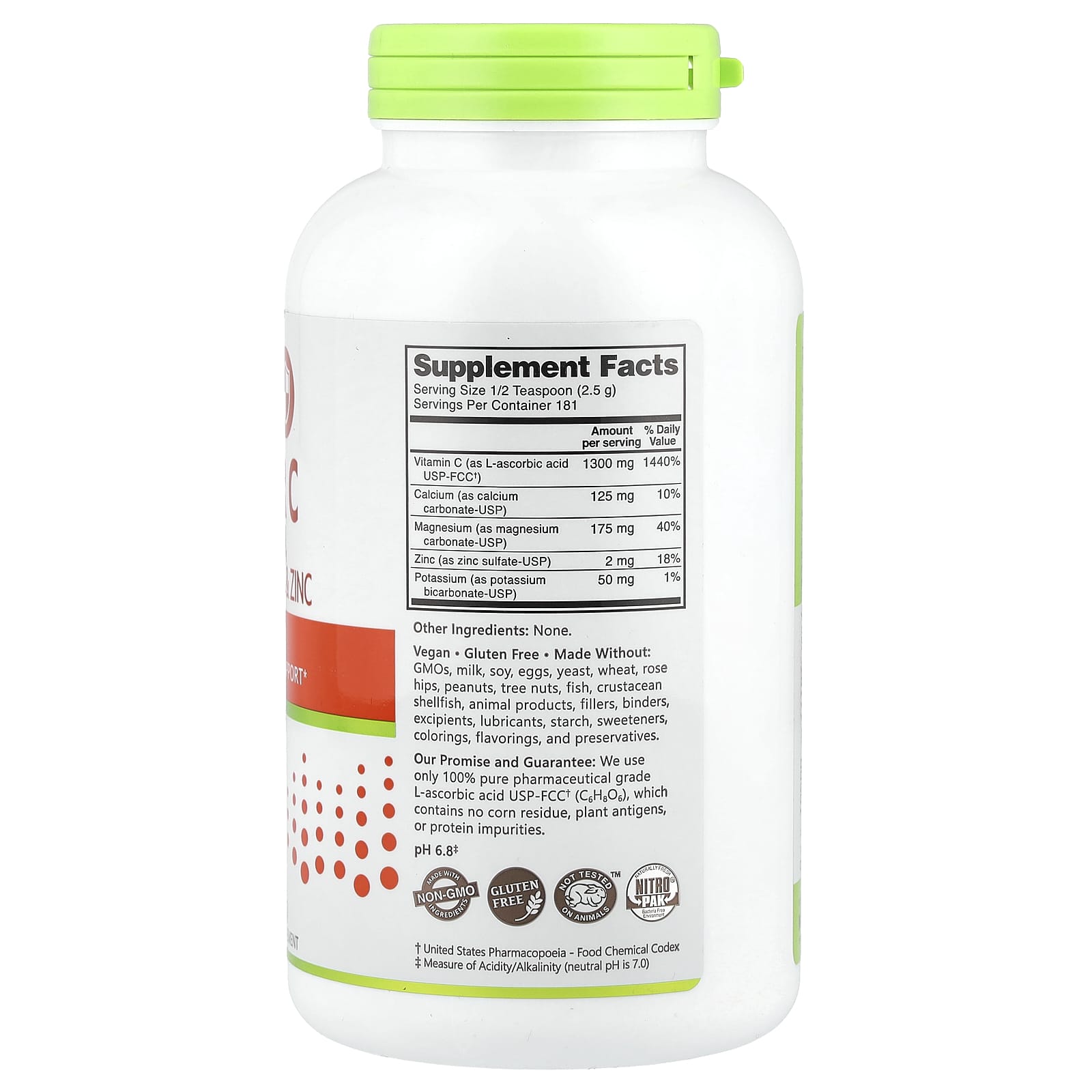 Hypo-Aller C от NutriBiotic® — это шипучий порошок, содержащий 100% L-аскорбиновую кислоту (витамин C) фармацевтической степени чистоты и ряд минералов с высокой биодоступностью, в том числе кальций, магний, калий и цинк, в легко растворимой форме.