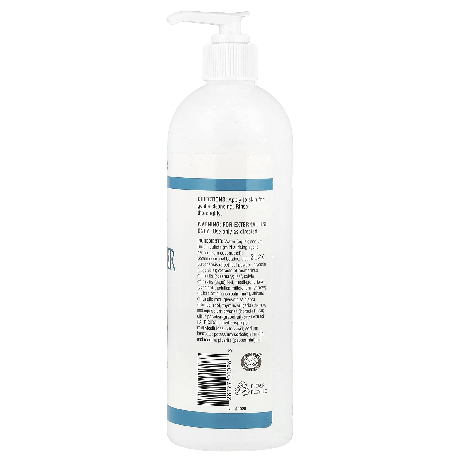 Вода, лауретсульфат натрия (мягкое мылкое вещество, полученное из кокосового масла), кокамидопропилбетаин, порошок из листьев алоэ вера (Aloe barbadensis), глицерин (растительный), экстракт листьев розмарина (Rosmarinus officinalis), листья шалфея (Salvia officinalis), мать-и-мачеха (Tussilago farfara), тысячелистник обыкновенный (Achillea millefolium), мелисса лекарственная (Melissa officinalis), экстракт корня алтея (Althaea officinalis), корень солодки (Glycyrrhiza glabra), чабрец (Thymus vulgaris), и листья хвоща полевого (Equisetum arvense), экстракт косточек грейпфрута (Citrus paradisi) [Citricidal], гидроксипропилметилцеллюлоза, лимонная кислота, бензоат натрия, сорбат калия, аллантоин и масло перечной мяты (Mentha piperita).