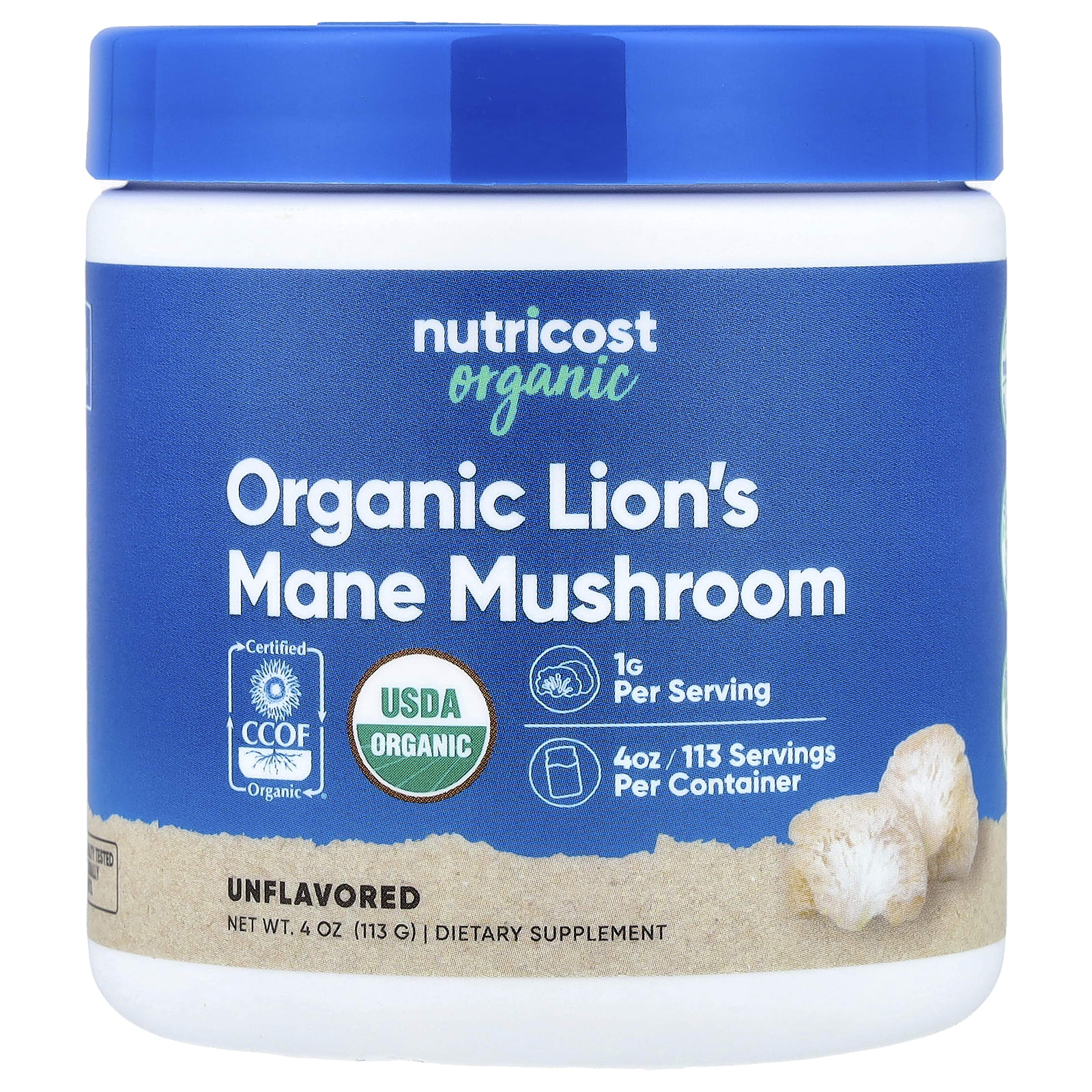 Nutricost, органический гриб ежовик гребенчатый, без добавок, 113 г (4 унции)
