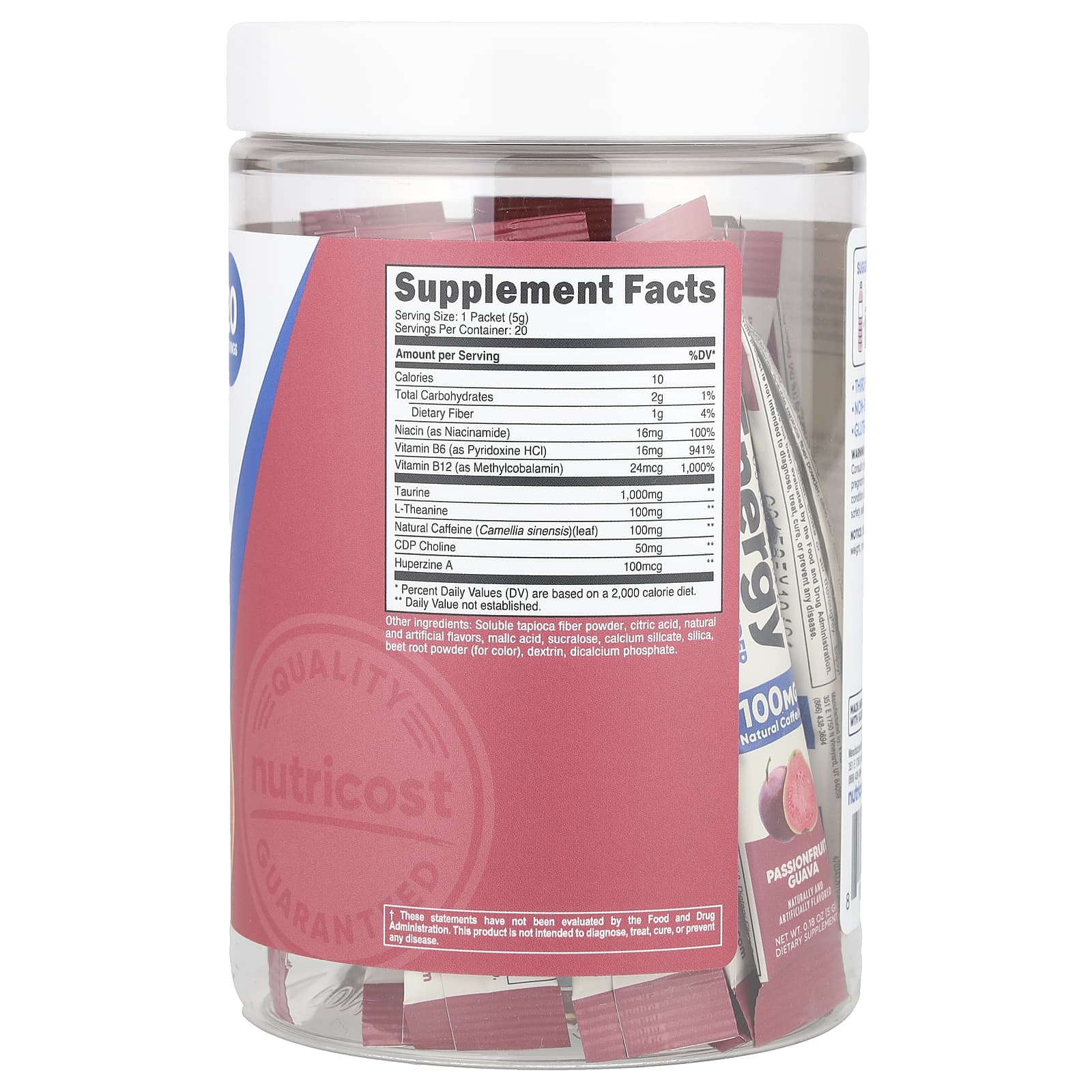 Nutricost, Energy, Clean Energy в порошке, маракуйя и гуава, 20 пакетиков по 5 г (0,18 унции)