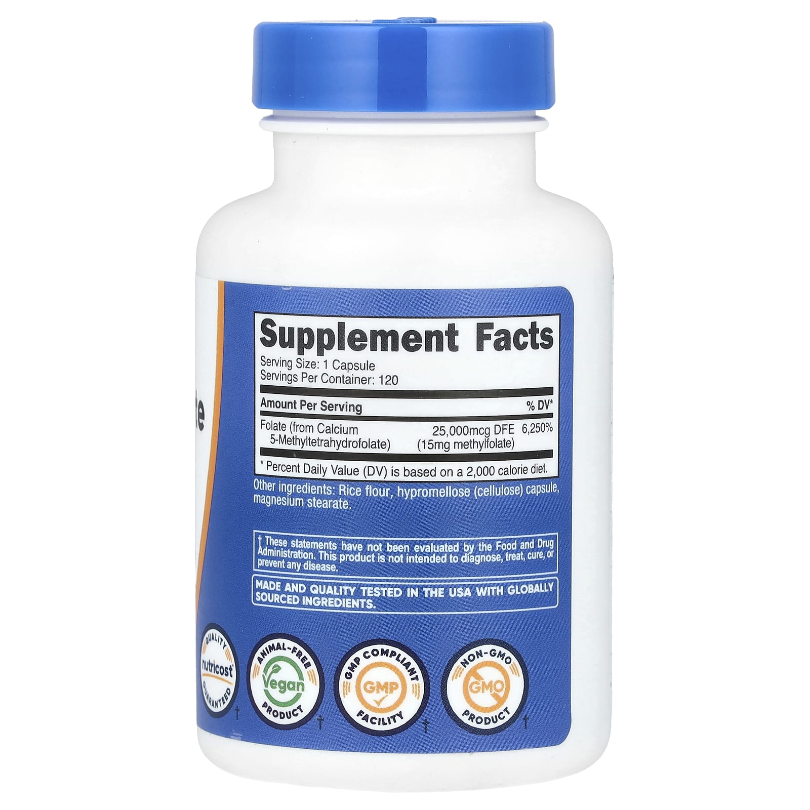 Nutricost, L-метилфолат, 15 мг, 120 капсул