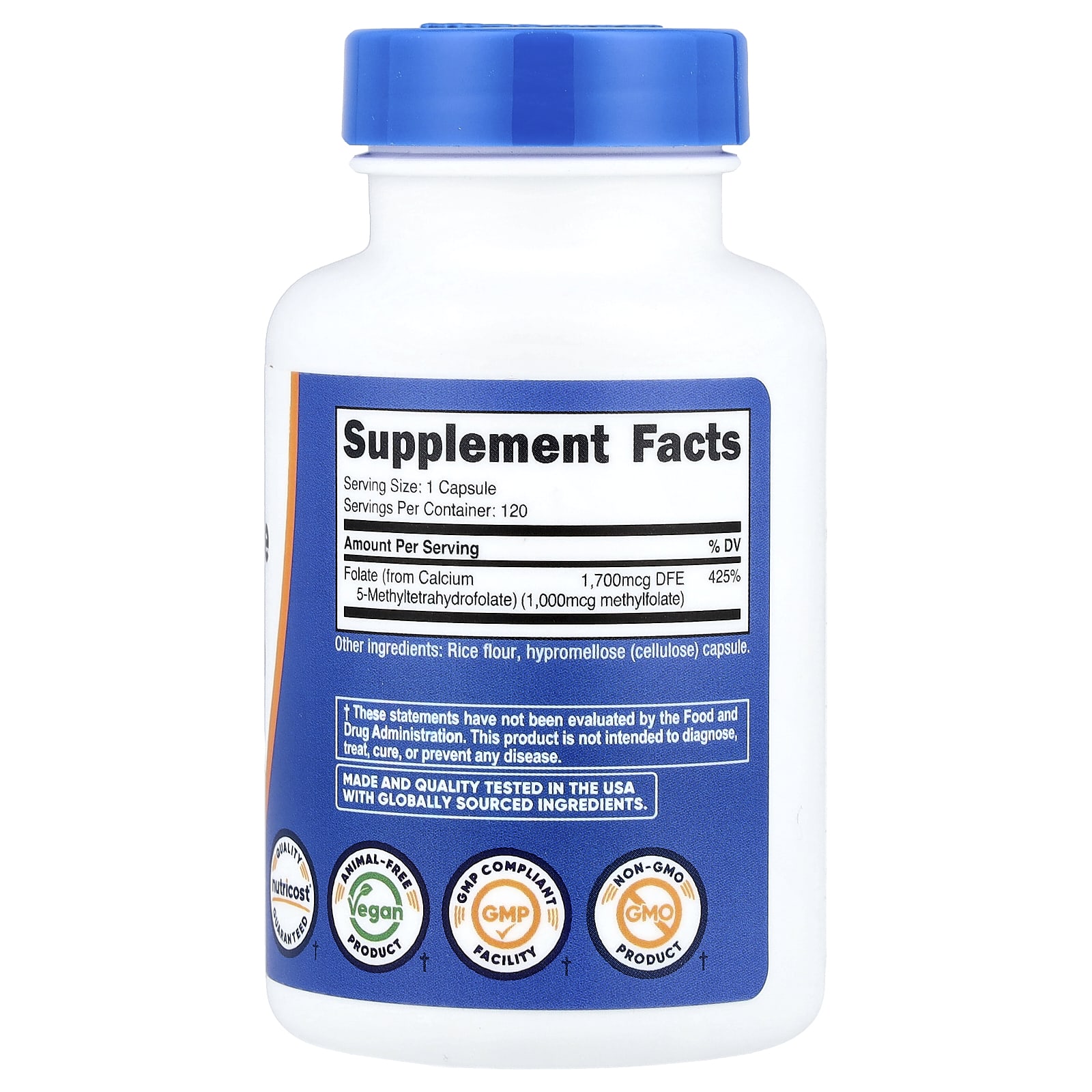 | Фолат (из 5-метилтетрагидрофолата кальция) (1000 мкг метилфолата) | 1700 мкг DFE | 425% |