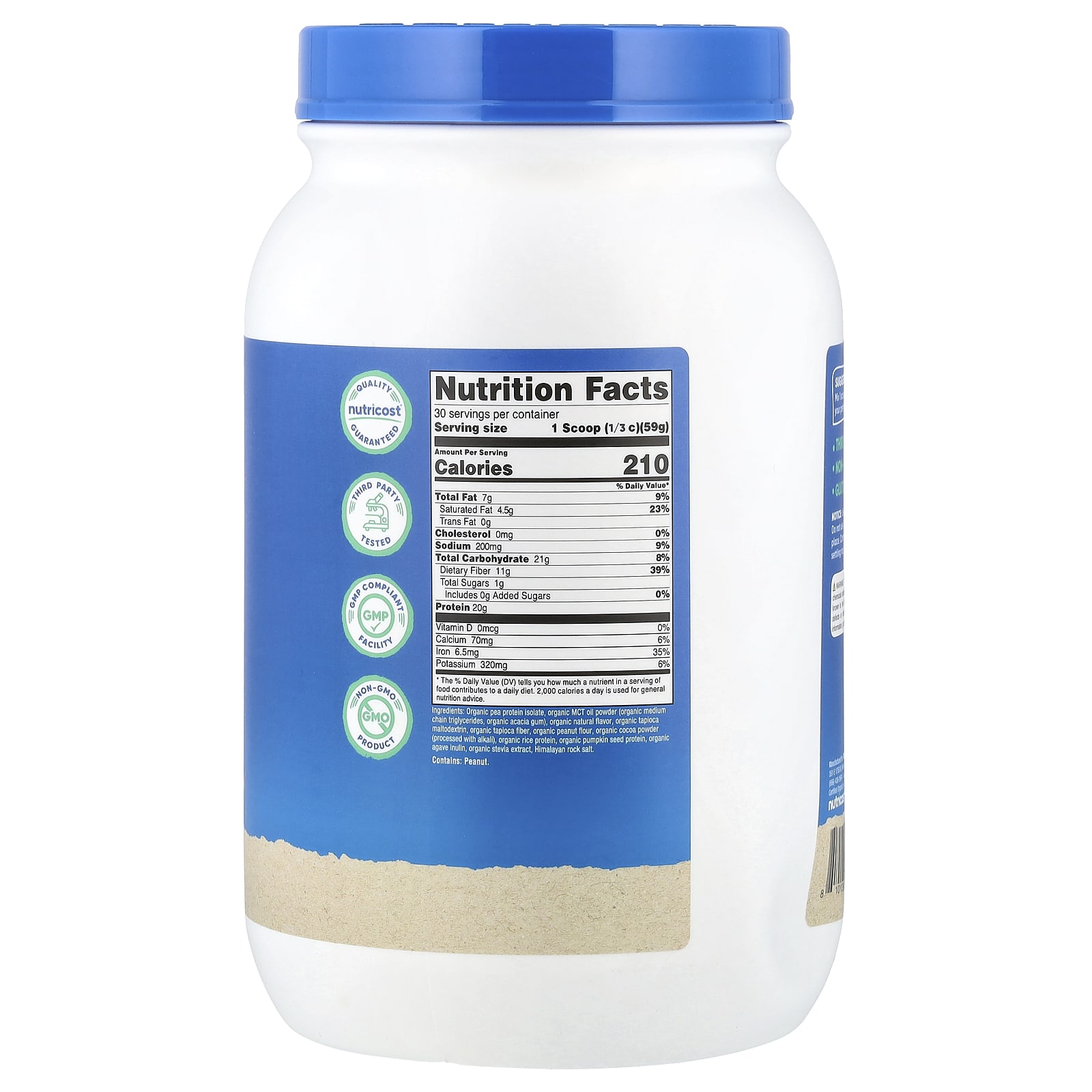 Изолят органического горохового протеина, порошок органического масла MCT (органические среднецепочечные триглицериды, органическая камедь акации), органический натуральный ароматизатор, органический мальтодекстрин из тапиоки, органическое волокно тапиоки, органическая арахисовая мука, органический какао-порошок (обработанный щелочью), органический рисовый протеин, органический протеин из семян тыквы, органический инулин агавы, экстракт органический стевии, Гималайская каменная соль.