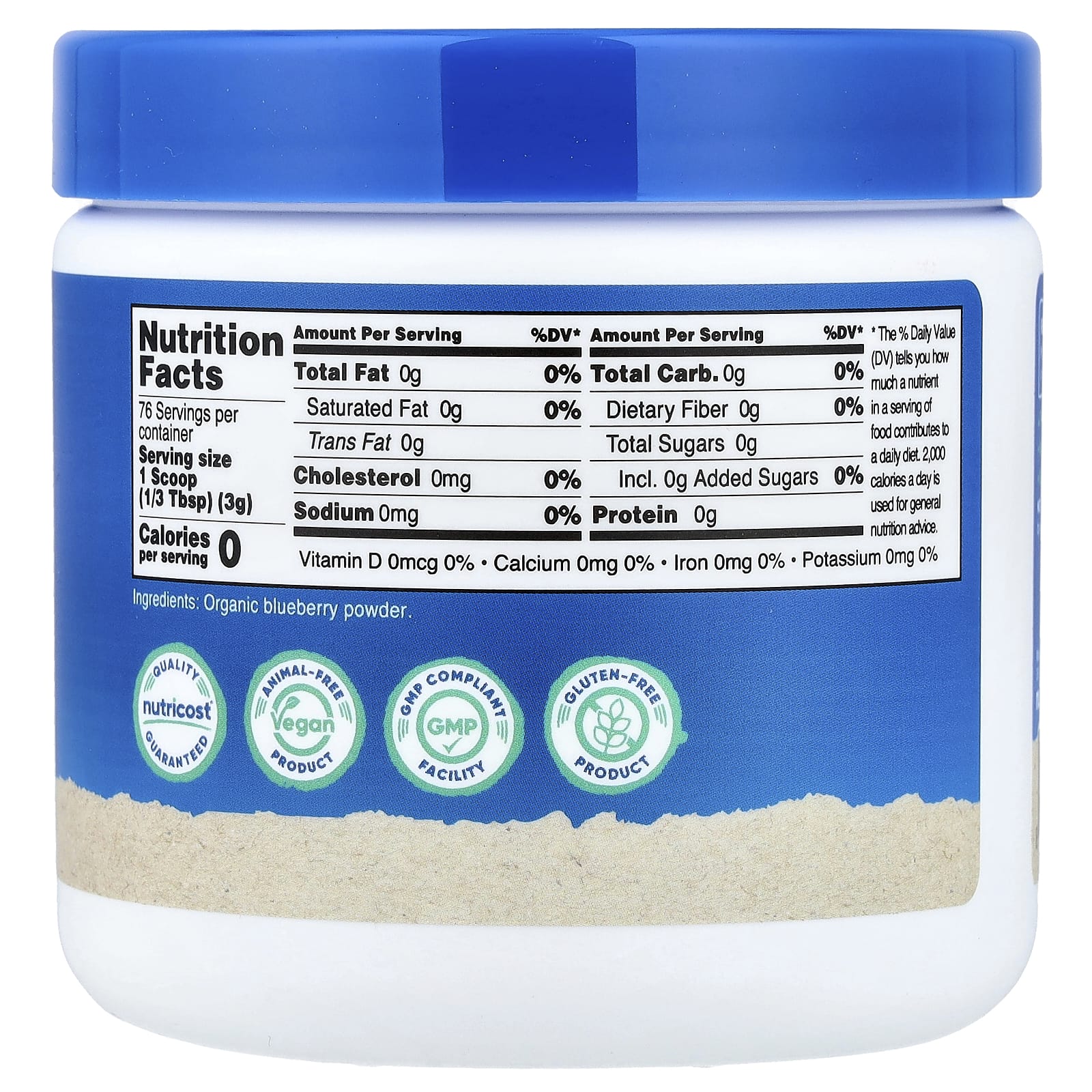 Чистый органический порошок из голубики, без других ингредиентов.