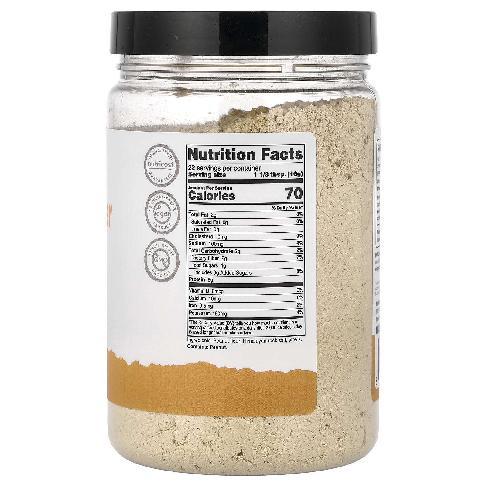 †Традиционная арахисовая паста содержит 190 калорий и 16 г жира по сравнению с 140 калориями и 4 г жира в арахисовой пасте Nutricost на 2 порцию (2 2/3 ст. л. сухого продукта).