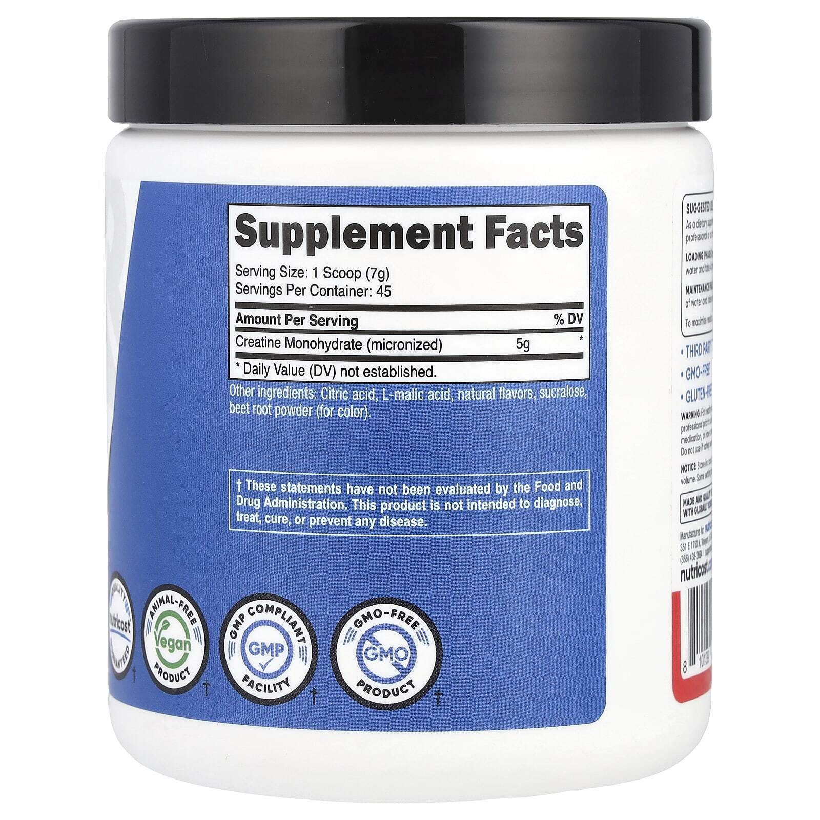 | Моногидрат креатина (микронизированный) | 5 г | * |