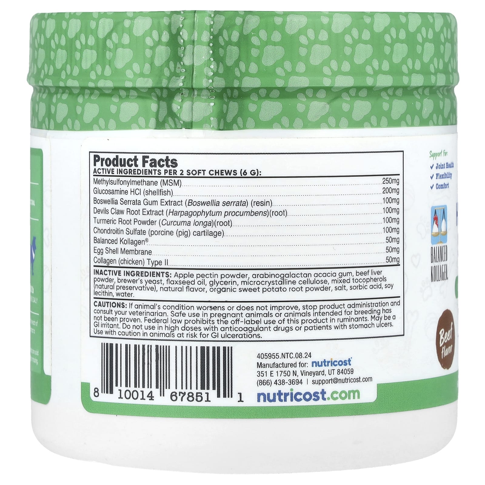 Рекомендуется собакам для поддержания структурной целостности суставов и соединительных тканей.