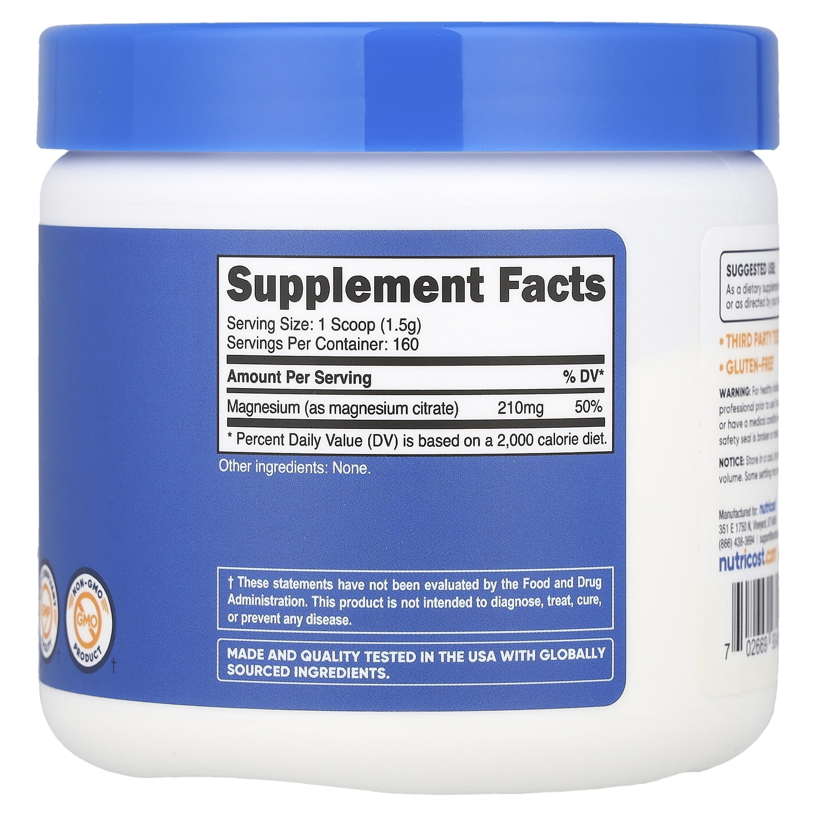 Nutricost, Цитрат магния, без добавок, 250 г (8,8 унции)