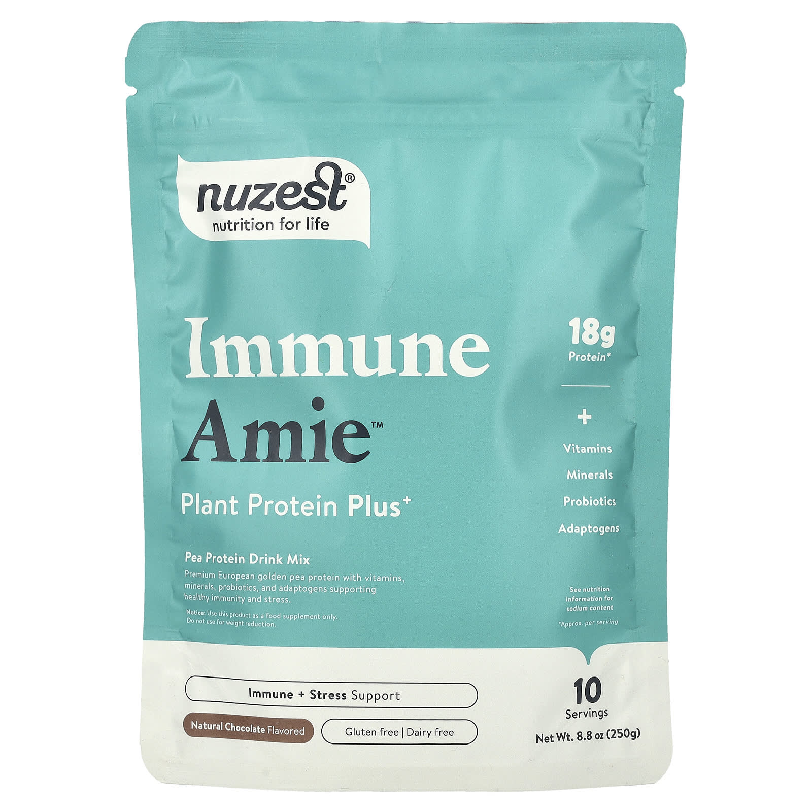 Premium European golden pea protein with vitamins, minerals, probiotics, and adaptogens supporting healthy immunity and stress.