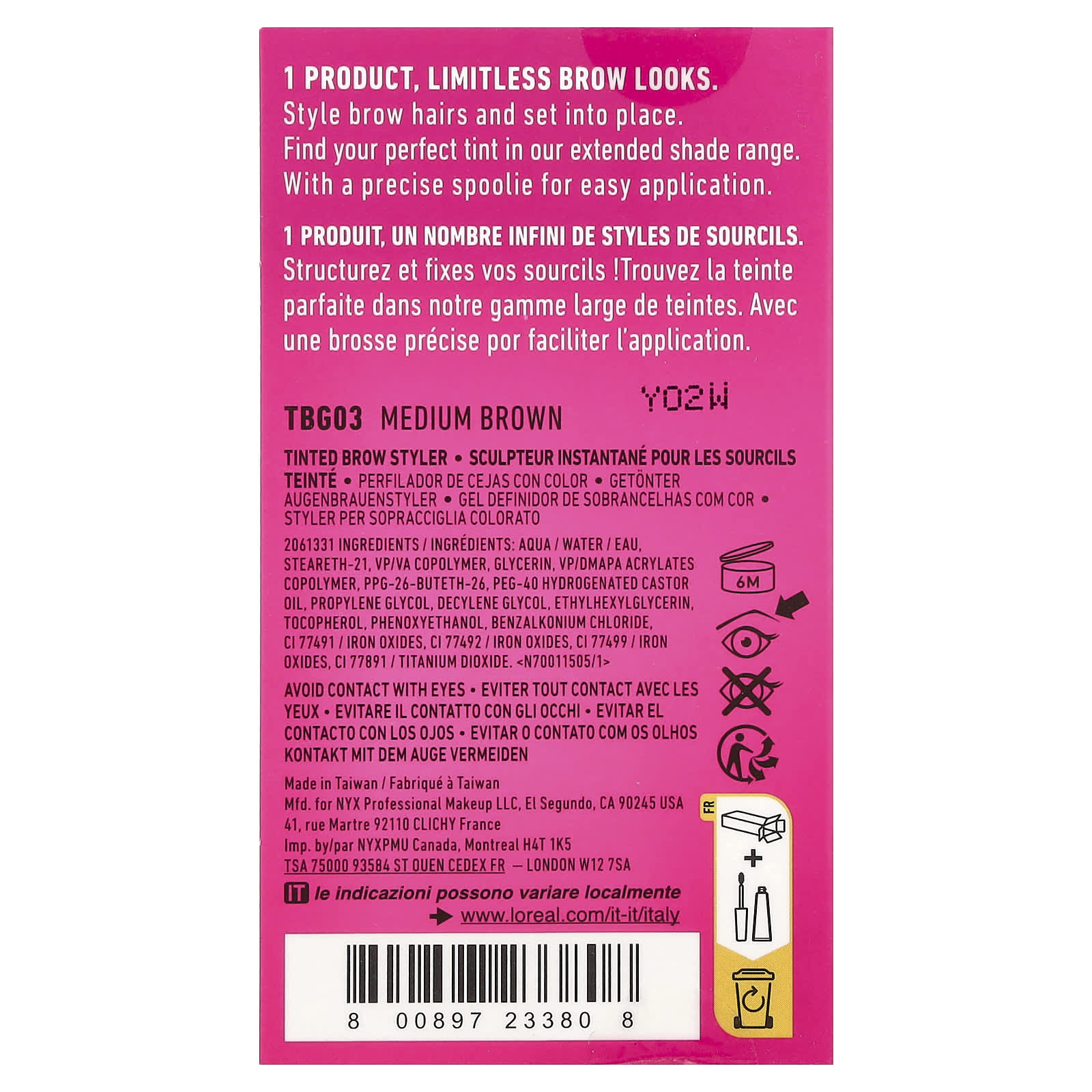 Приклейте его к бровям! Представляем вашему вниманию первый мгновенный укладчик для бровей от NYX Professional Makeup. Этот клей для бровей просто необходим для стойкого макияжа бровей. Уникальная формула устойчива к шелушению и обеспечивает до 16 часов нелипкой фиксации. Кроме того, его легко и быстро наносить: Просто используйте прилагаемую катушку с круглой щетиной, чтобы расчесать брови и уложить волосы, чтобы они действительно сохраняли эффектный вид.