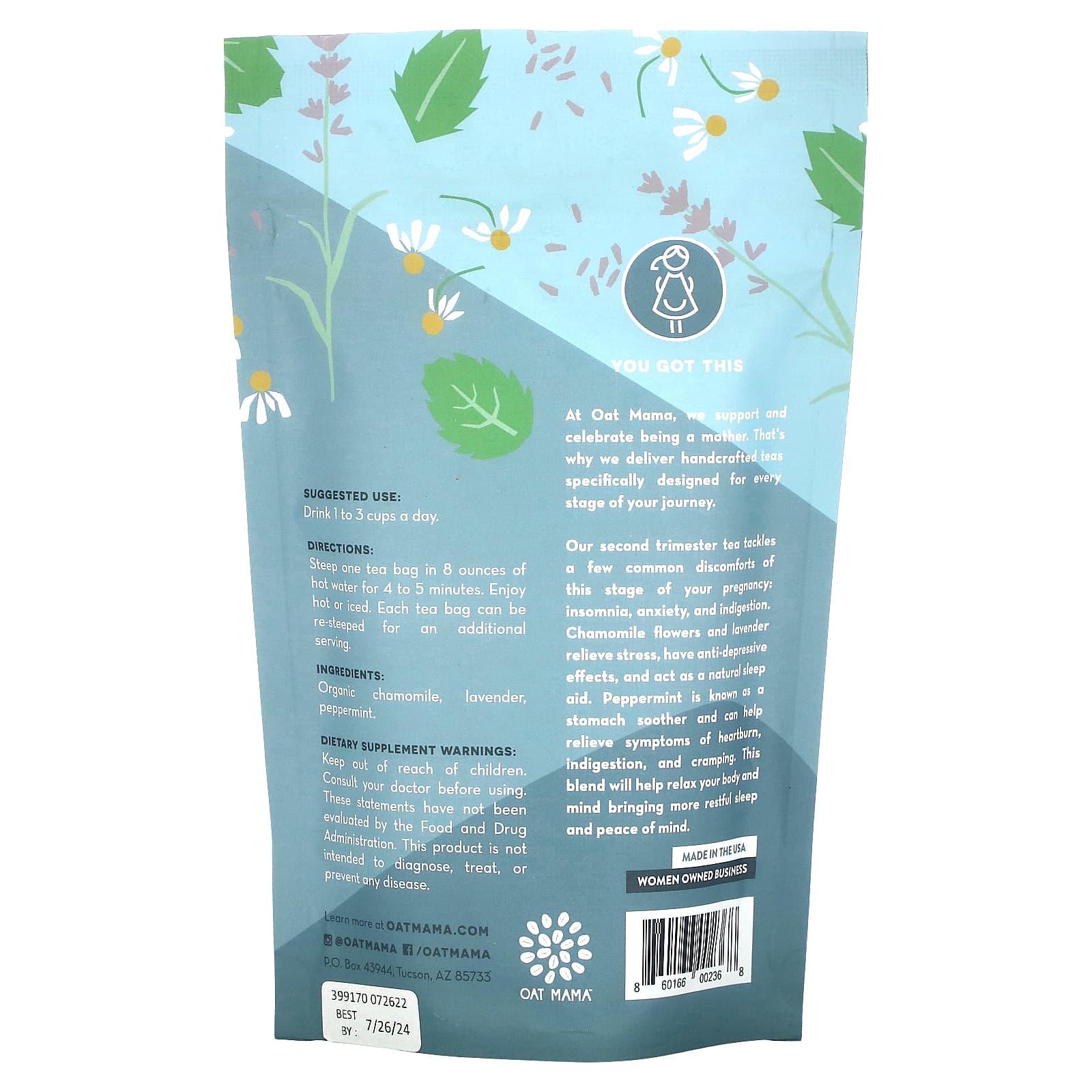 Наш чай для второго триместра устраняет несколько распространенных дискомфортов на этом этапе беременности: бессонницу, беспокойство и несварение. Цветки ромашки и лаванда снимают стресс, обладают антидепрессивным действием и являются естественным снотворным. Перечная мята известна как успокаивающее средство для желудка и может помочь облегчить симптомы изжоги, несварения желудка и спазмов. Эта смесь поможет расслабить тело и разум, обеспечивая более спокойный сон и спокойствие.