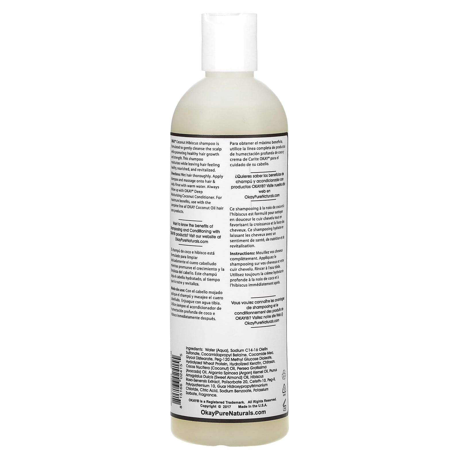 Шампунь OKAY® с кокосом и гибискусом разработан для мягкого очищения кожи головы, способствуя здоровому росту и силе волос. Этот шампунь увлажняет, делая волосы здоровыми, питательными и обновленными.