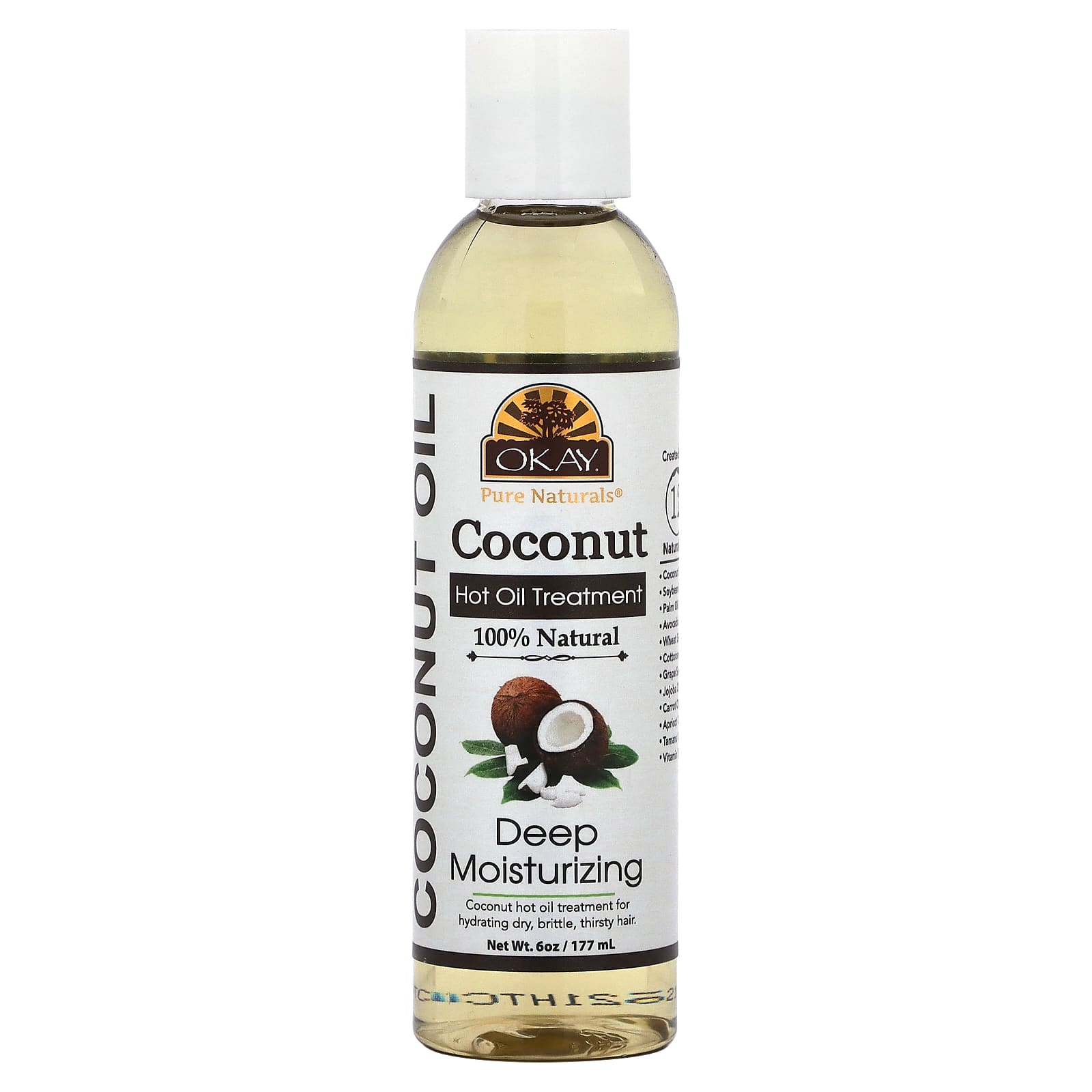 Кокосовое масло (Cocos nucifera), соевое масло, пальмовое масло (Elaeis guineensis), масло авокадо (Persea gratissima), масло зародышей пшеницы (Triticum vulgare), хлопковое масло (Gossypium herbaceum), масло виноградных косточек (vitis vinifera), масло жожоба (Simmondsia chinensis), масло из семян моркови (Daucus carota sativa), масло абрикоса (Prunus armeniaca), масло таману (Calophyllum inophyllum), токоферилацетат, натуральная отдушка.