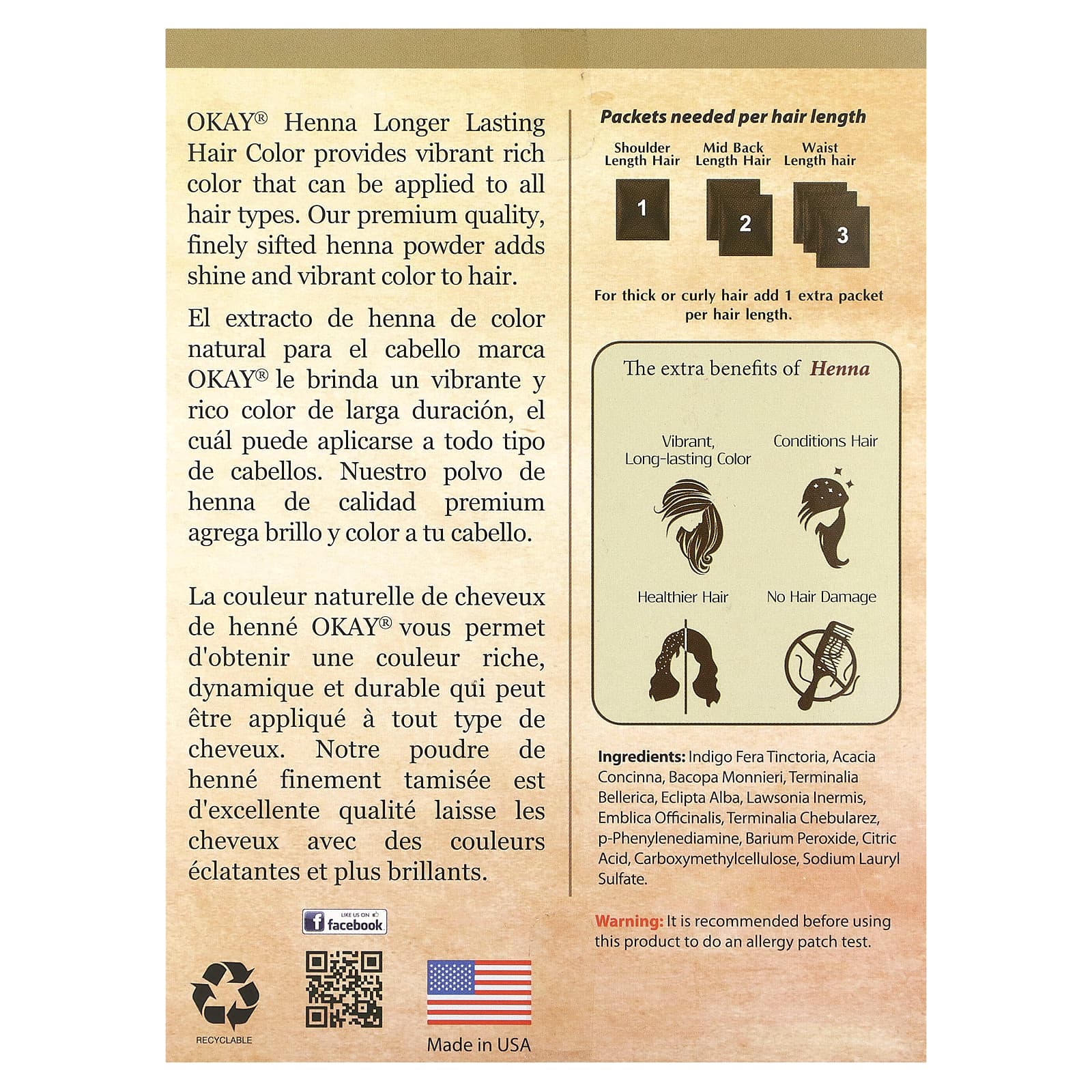 Стойкая краска для волос из хны OKAY® обеспечивает яркий насыщенный цвет, который можно наносить на все типы волос. Наша тонко просеянная хна премиального качества придает волосам блеск и яркий цвет.