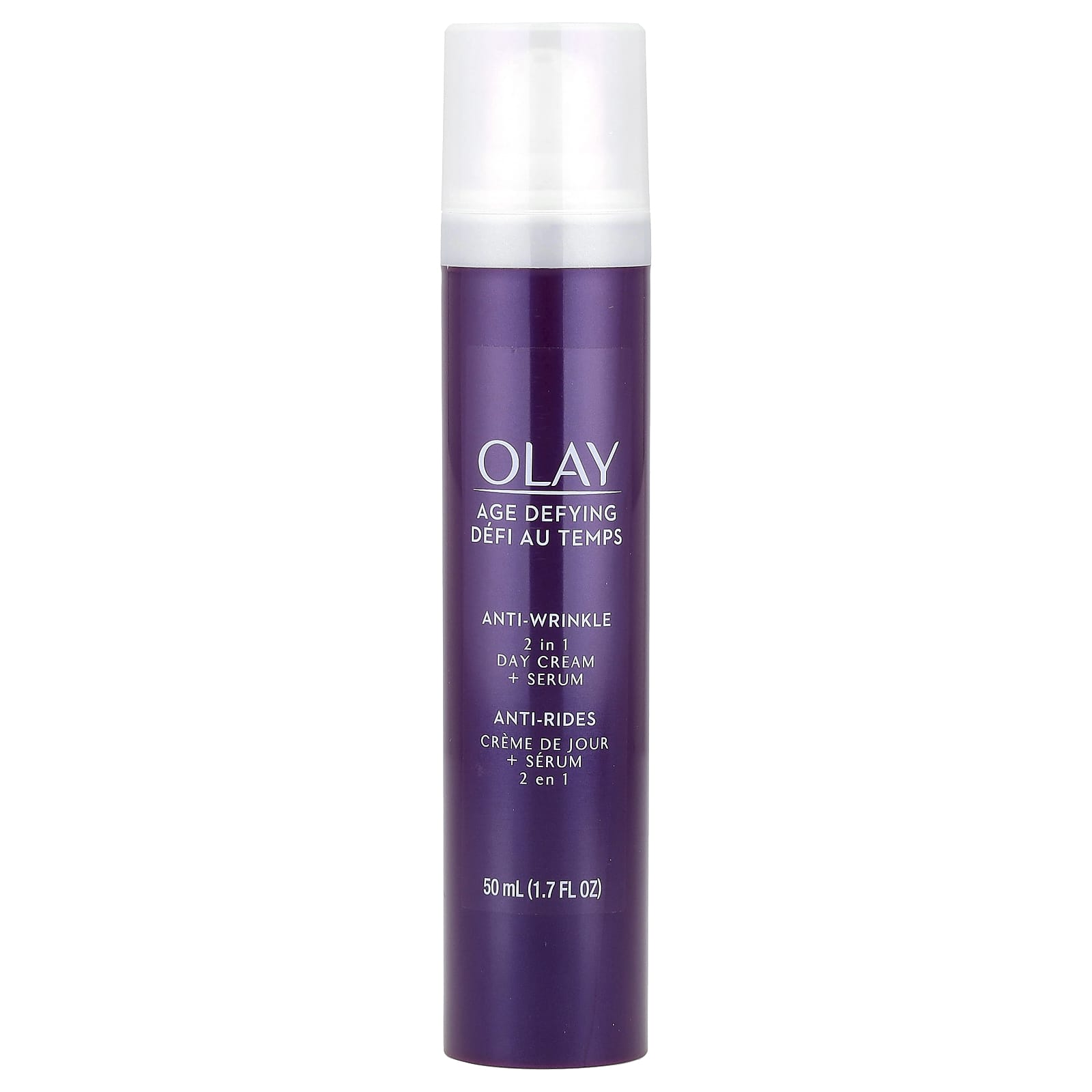 Дневной антивозрастной крем и сыворотка 2 в 1 от Olay сочетает в себе крем против морщин и подтягивающую сыворотку, которая увлажняет, уменьшает появление мелких морщин и подтягивает кожу — все в одном простом продукте.