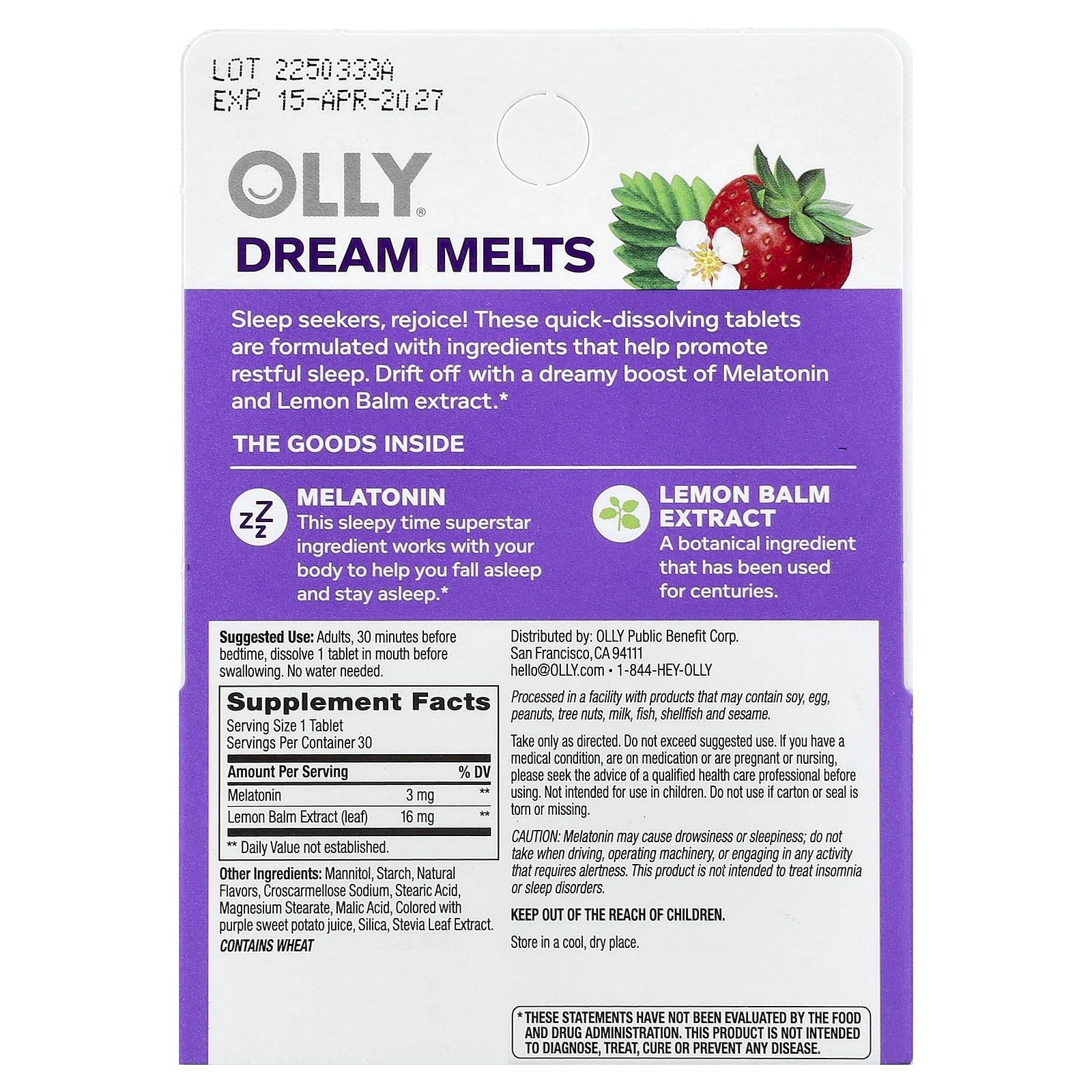 Любители сна, радуйтесь! Эти быстрорастворимые таблетки содержат ингредиенты, которые способствуют спокойному сну. Наслаждайтесь сном благодаря мелатонину и экстракту мелиссы.