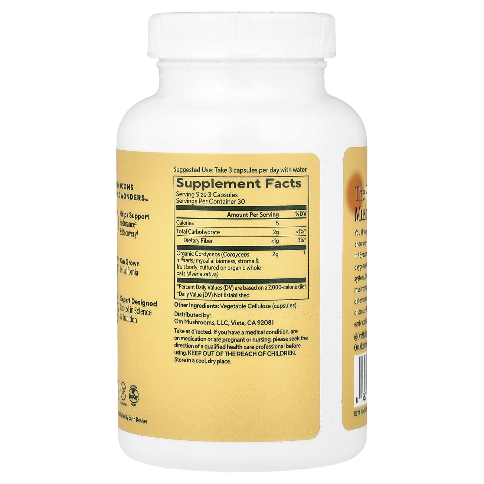 | Сертифицированный кордицепс (Cordyceps militaris) мицелиальная биомасса, строма и плодовое тело; Культивирование Органический цельный овес (Avena sativa) | 2 г | † |