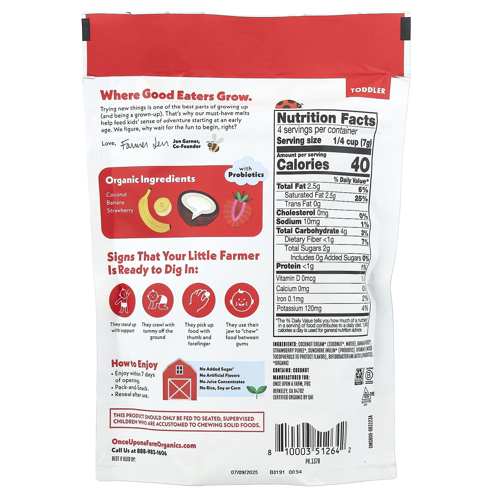 Кокосовый крем * (кокос *, вода), банановое пюре *, клубничное пюре *, инулин * (пребиотик), витамин Е (смешанные токоферолы для защиты вкуса), бифидобактерии лактис (пробиотик).