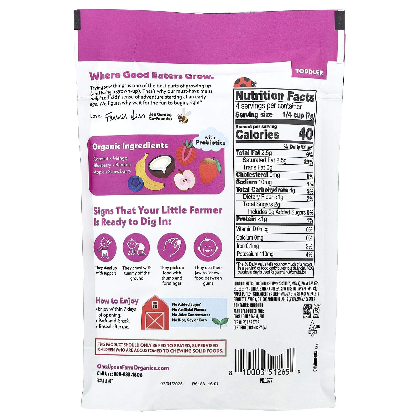 Кокосовый крем * (кокос *, вода), пюре из манго *, черничное пюре *, банановое пюре *, инулин * (пребиотик), яблочное пюре *, клубничное пюре *, витамин Е (смешанные токоферолы для защиты вкуса), бифидобактерии лактис (пробиотик).