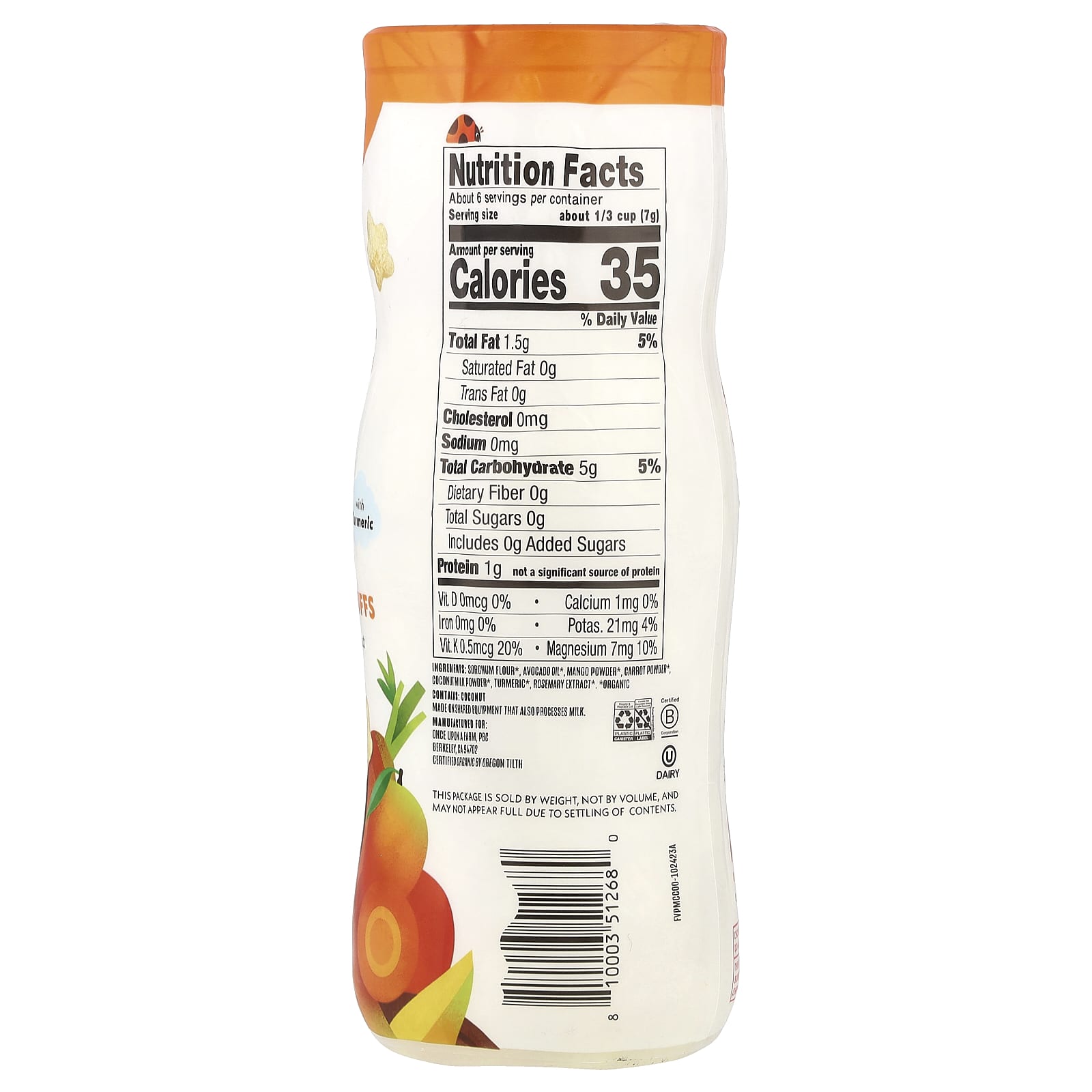 Мука из сорго *, масло авокадо *, порошок из манго *, морковный порошок *, сухое кокосовое молоко *, куркума*, экстракт розмарина *.