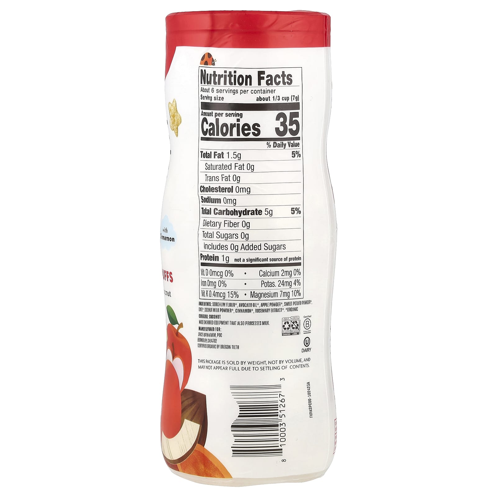 Мука из сорго *, масло авокадо *, яблочный порошок *, порошок из батата*, дата *, сухое кокосовое молоко *, корица*, экстракт розмарина *.