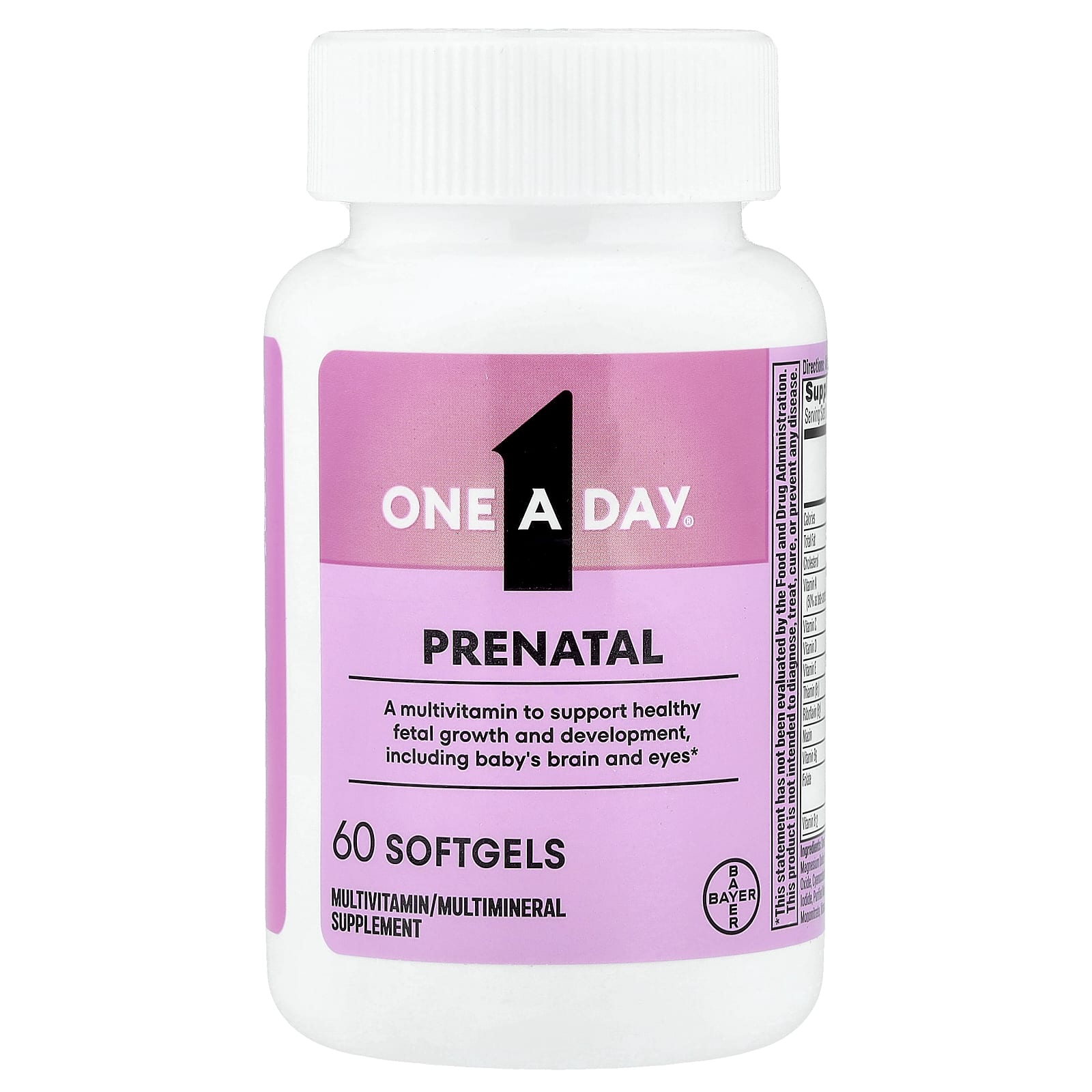 One A Day® Women's Prenatal 1 - это мультивитаминный комплекс, содержащий не менее 100% суточной нормы основных питательных веществ, таких как фолиевая кислота и железо.