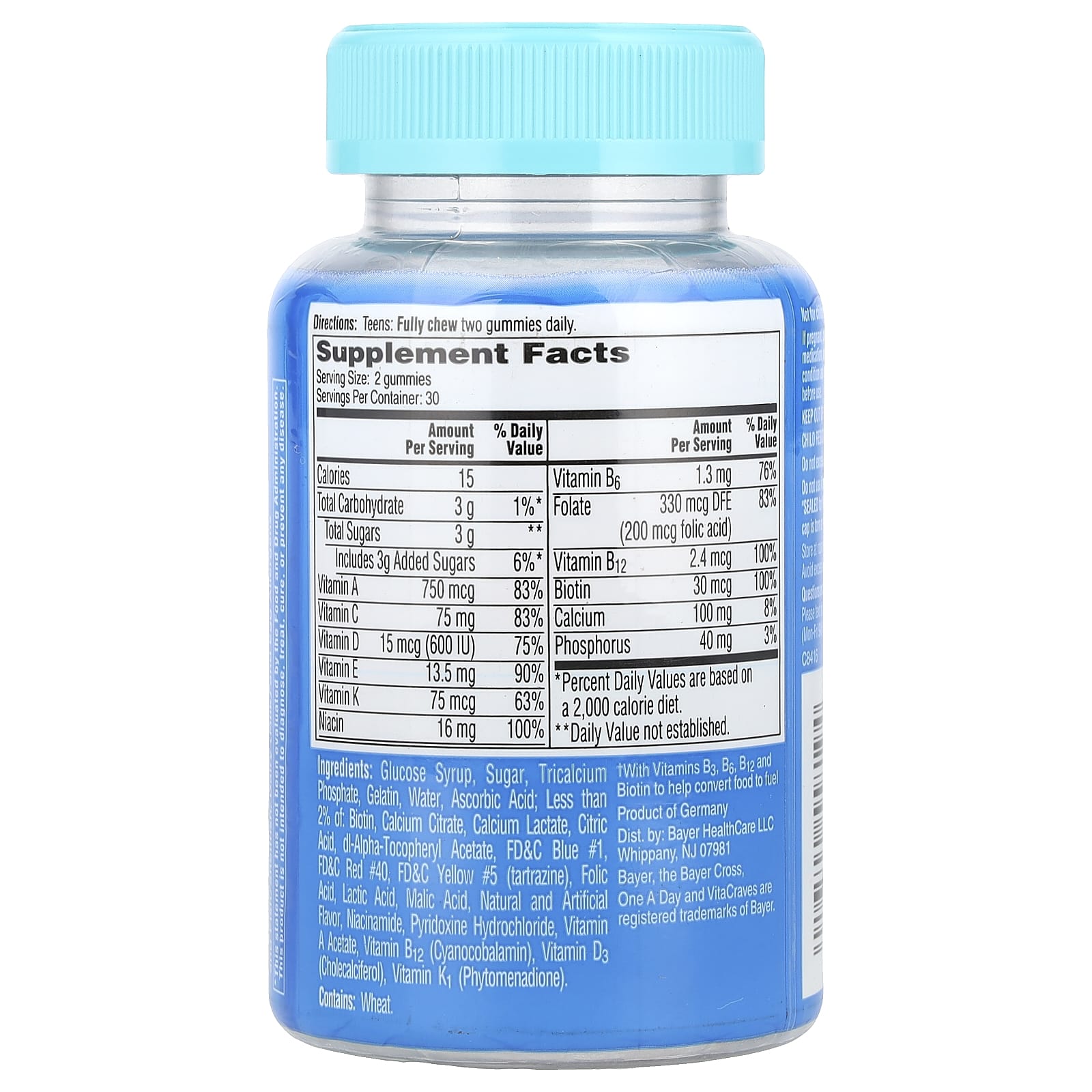 Крахмальная патока, сахар, трикальцийфосфат, желатин, вода, аскорбиновая кислота; Менее 2% биотина., цитрат кальция, лактат кальция, лимонная кислота, dl-альфа-токоферилацетат, краситель синий 1 FD&C, краситель красный 40 FD&C, краситель желтый 5 FD&C (тартразин), фолиевая кислота, молочная кислота, яблочная кислота, натуральные и искусственные ароматизаторы, никотинамид, пиридоксина гидрохлорид, ацетат витамина A, витамин B12 (цианокобаламин), витамин D3 (холекальциферол), витамин K1 (фитоменадион).