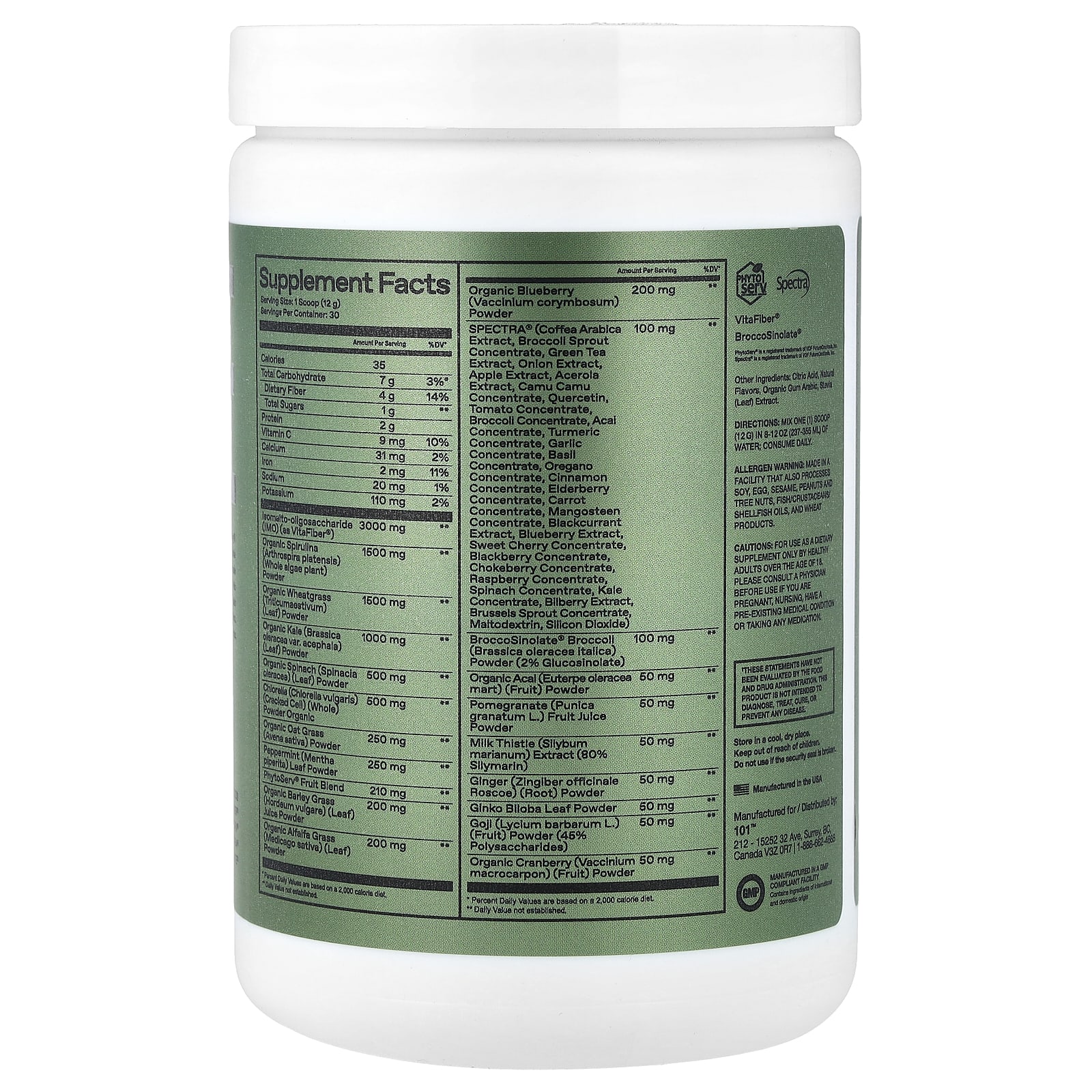 | Порошок из листьев органического шпината (Spinacia oleracea) | 500 мг | ** |