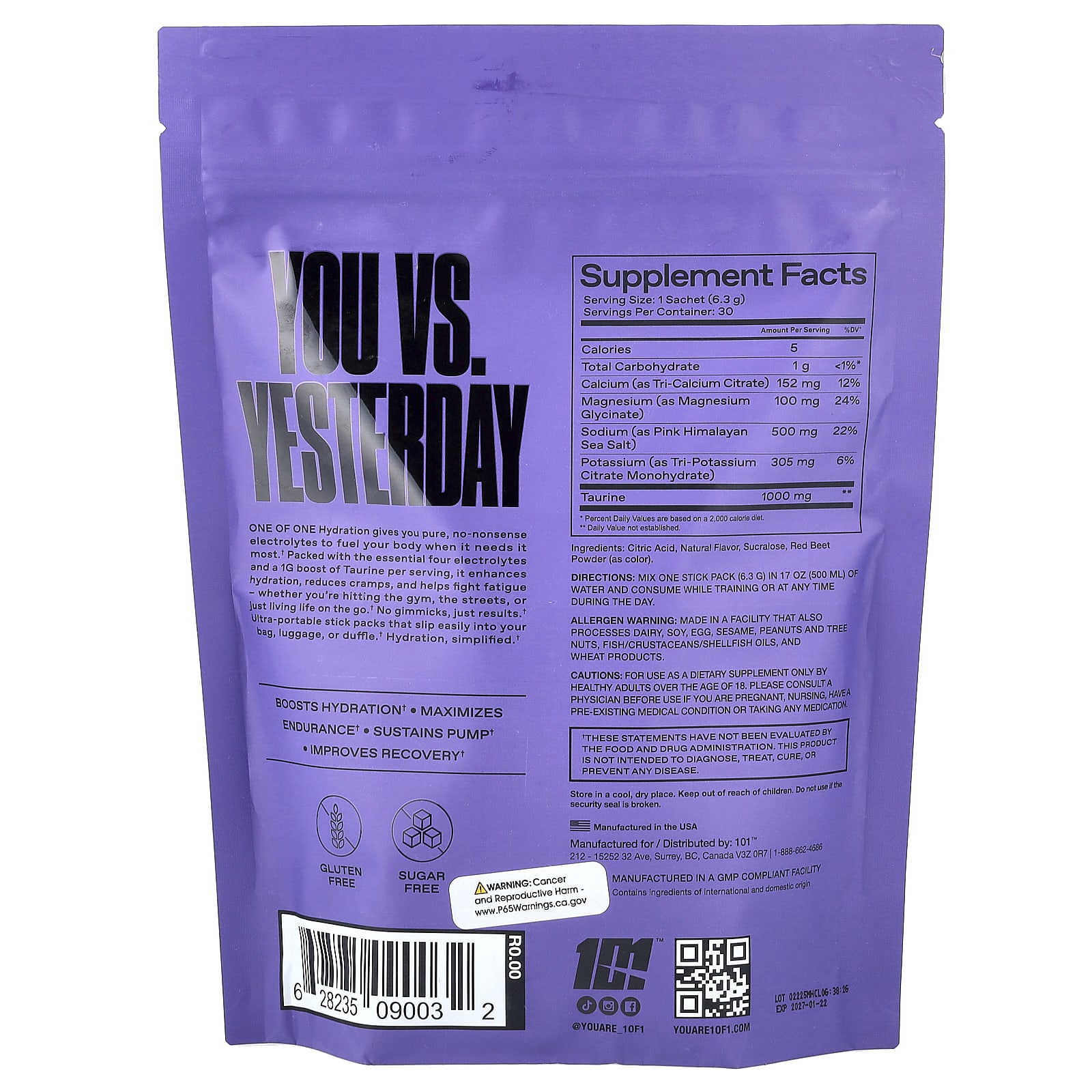 ONE OF ONE Hydration содержит чистые, серьезные электролиты, которые обеспечивают энергию для вашего организма, когда он больше всего в этом нуждается. Содержит четыре незаменимых электролита и 1 г таурина в каждой порции. Они восполняют потери жидкости, уменьшают судороги и помогают бороться с усталостью — независимо от того, занимаетесь ли вы в тренажерном зале, на улице или просто в дороге. Никаких уловок, только результат. Удобные в использовании стик-пакеты, которые легко поместятся в сумку, Чемодан или спортивную одежду. Увлажнение.