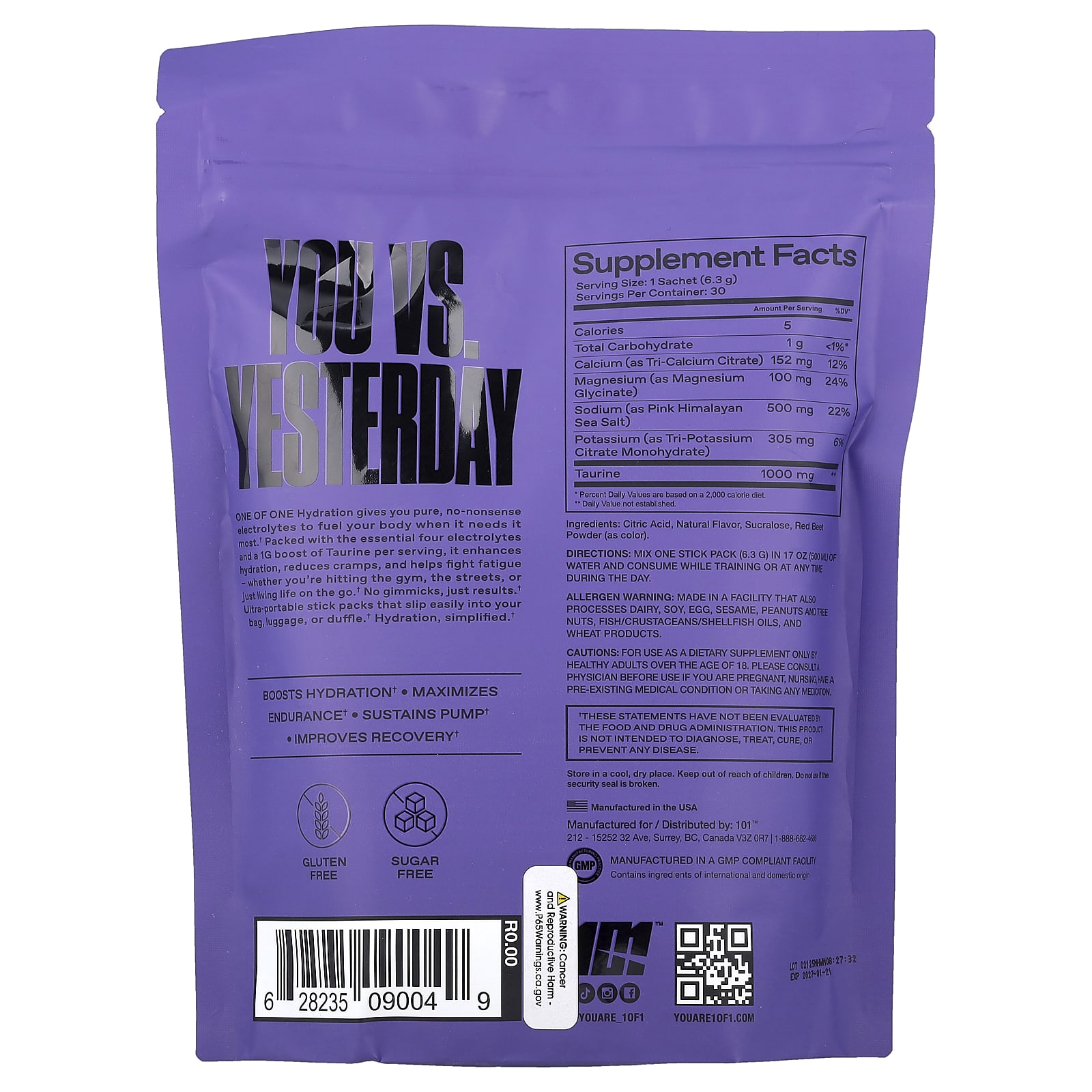 One of One Hydration — это чистые, бескомпромиссные электролиты, которые дают организму энергию, когда он нуждается в ней больше всего. Каждая порция содержит четыре основных электролита и 1 г таурина, что усиливает гидратацию, уменьшает судороги и помогает бороться с усталостью, где бы вы ни были — в спортзале, на улице или просто живёте в быстром ритме. Никаких уловок, только результат. Ультрапортативные стик-пакеты, которые легко помещаются в сумку, багаж или спортивную сумку. Гидратация в простой форме.