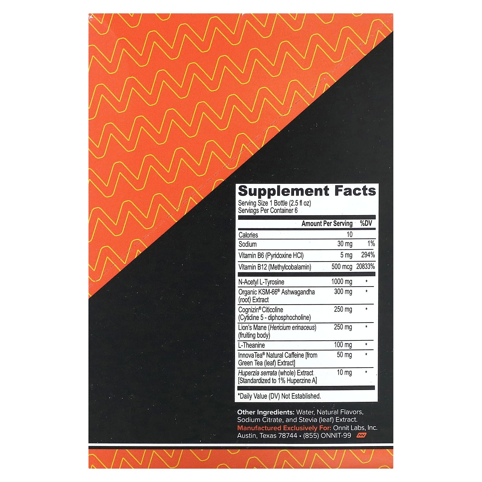 Onnit, Alpha BRAIN® Focus Shot, персик, 6 флаконов по 75 мл (2,5 жидк. унции)