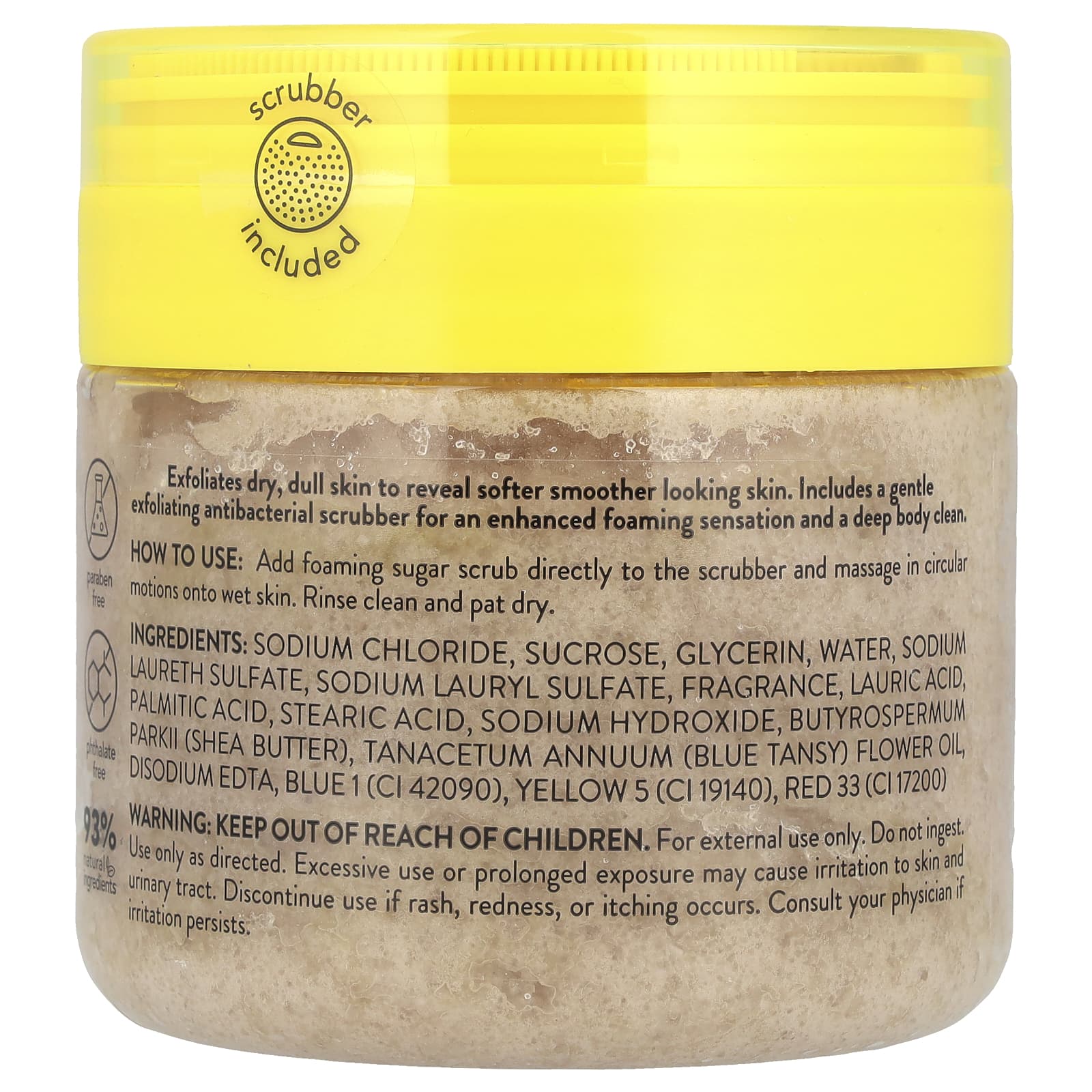 Добавьте пенящийся сахарный скраб прямо в скрабер и массажными движениями нанесите на влажную кожу. Промойте водой и вытрите насухо.