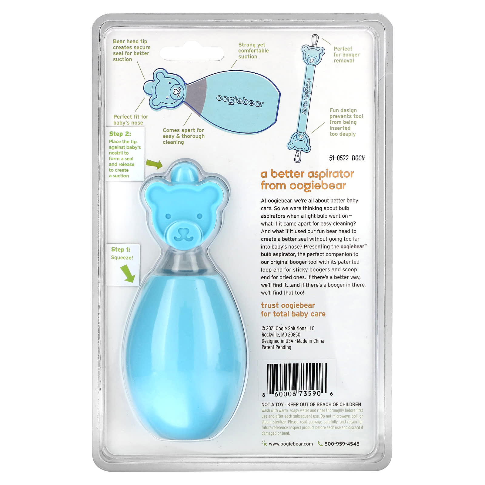 Компания oogiebear стремится улучшить уход за детьми. Итак, мы задумались о аспираторе, который когда зажигается лампочка — что, если она разобьется на части для легкой очистки? А что, если бы она использовала голову нашего забавного медвежонка, чтобы лучше закрыть нос, не залезая слишком глубоко в нос ребенку? Представляем аспиратор с луковицами oogiebear™, который является идеальным дополнением к нашему оригинальному насадку с запатентованной петлей для липких сорняков и мерной ложкой для засохших сосунков. Если есть способ лучше, мы его найдем. А если и есть козявка, мы ее находим!