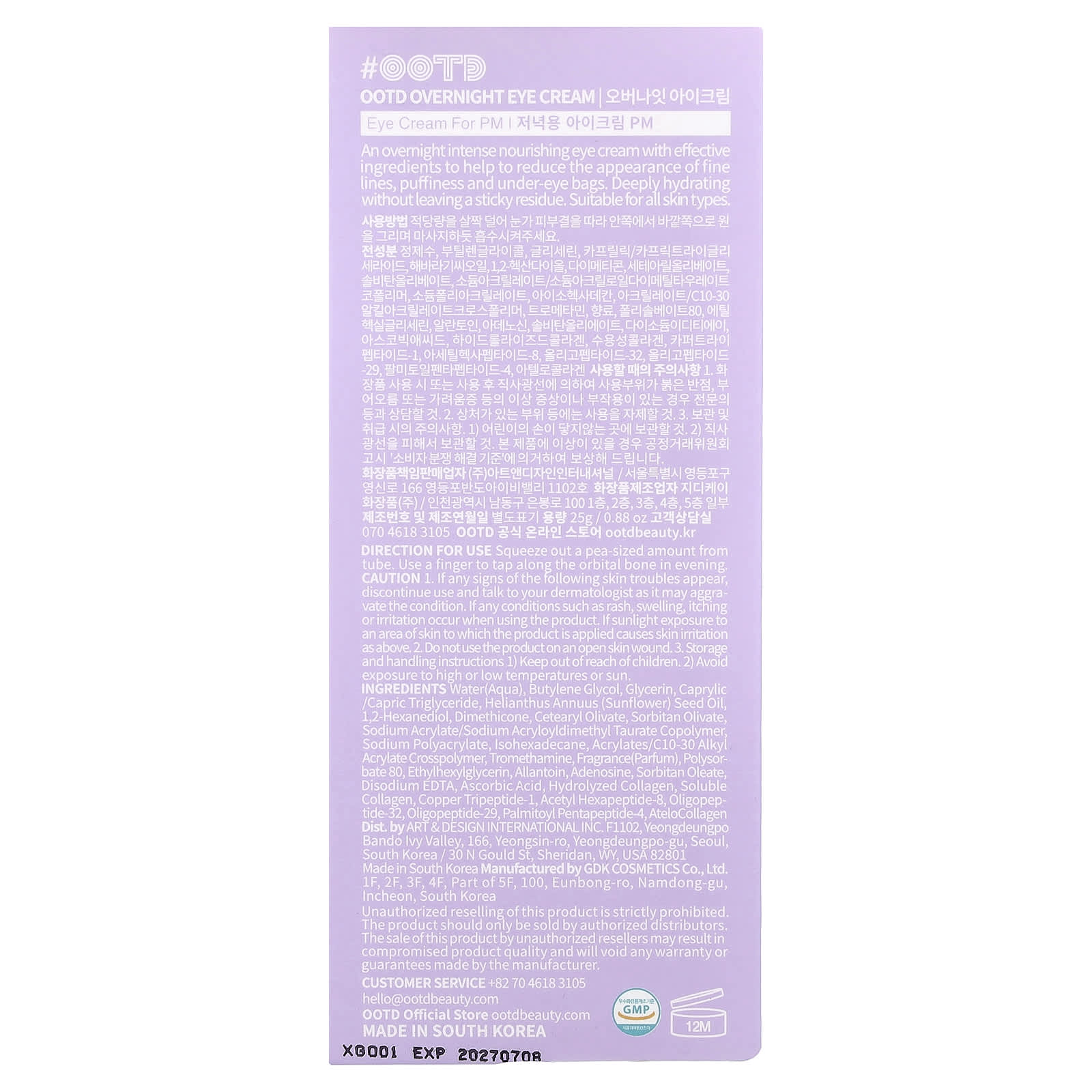 Результаты теста на уменьшение темных кругов под глазами: Протестировано корейским дерматологическим центром на 31 женщине в период с 1 по 21 июля 2021 года. Субъекты применения A: Используйте интенсивную сыворотку для глаз OOTD утром после очищения и наносите витамины B: Ночной крем для области вокруг глаз. Рекомендуется использовать в течение 4 недель.