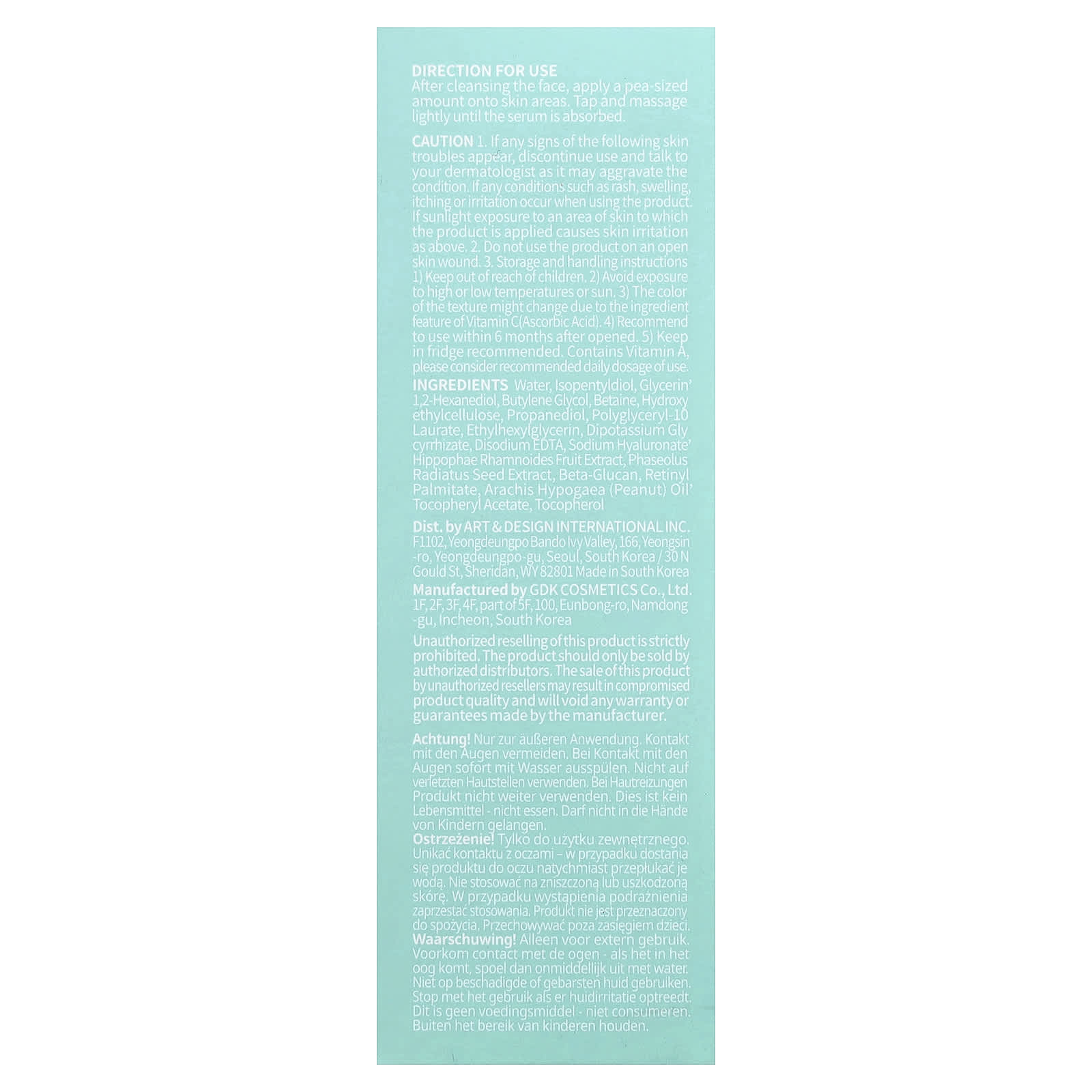 - Инструкции по хранению и обращению 1) Хранить в недоступном для детей месте. 2) Избегайте воздействия высоких или низких температур, а также солнца. 3) Цвет текстуры может измениться из-за особенностей ингредиента витамина С (аскорбиновой кислоты).
