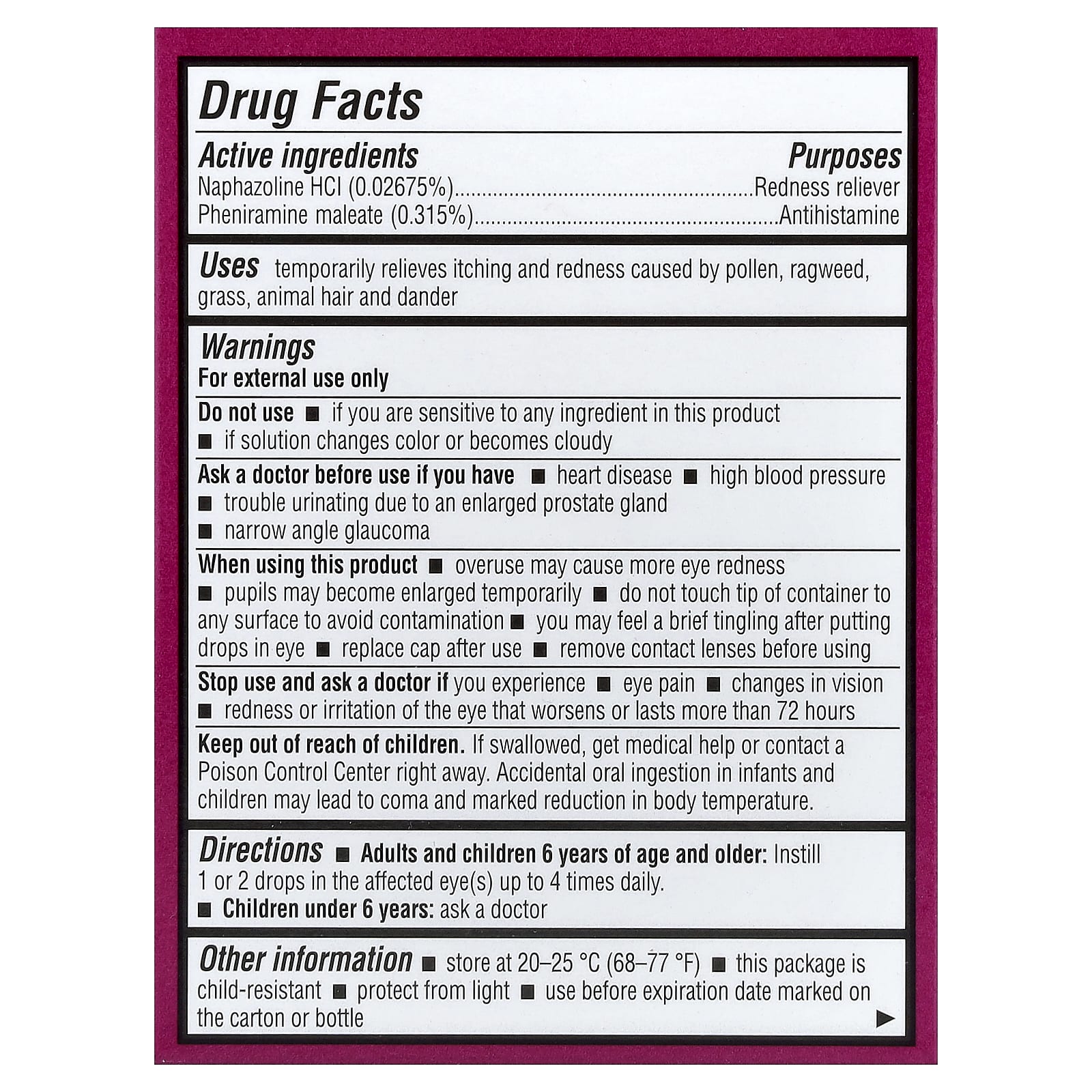 Opcon-A® сочетает в себе антигистаминный ингредиент и средство для снятия покраснения для временного облегчения зуда красных глаз.