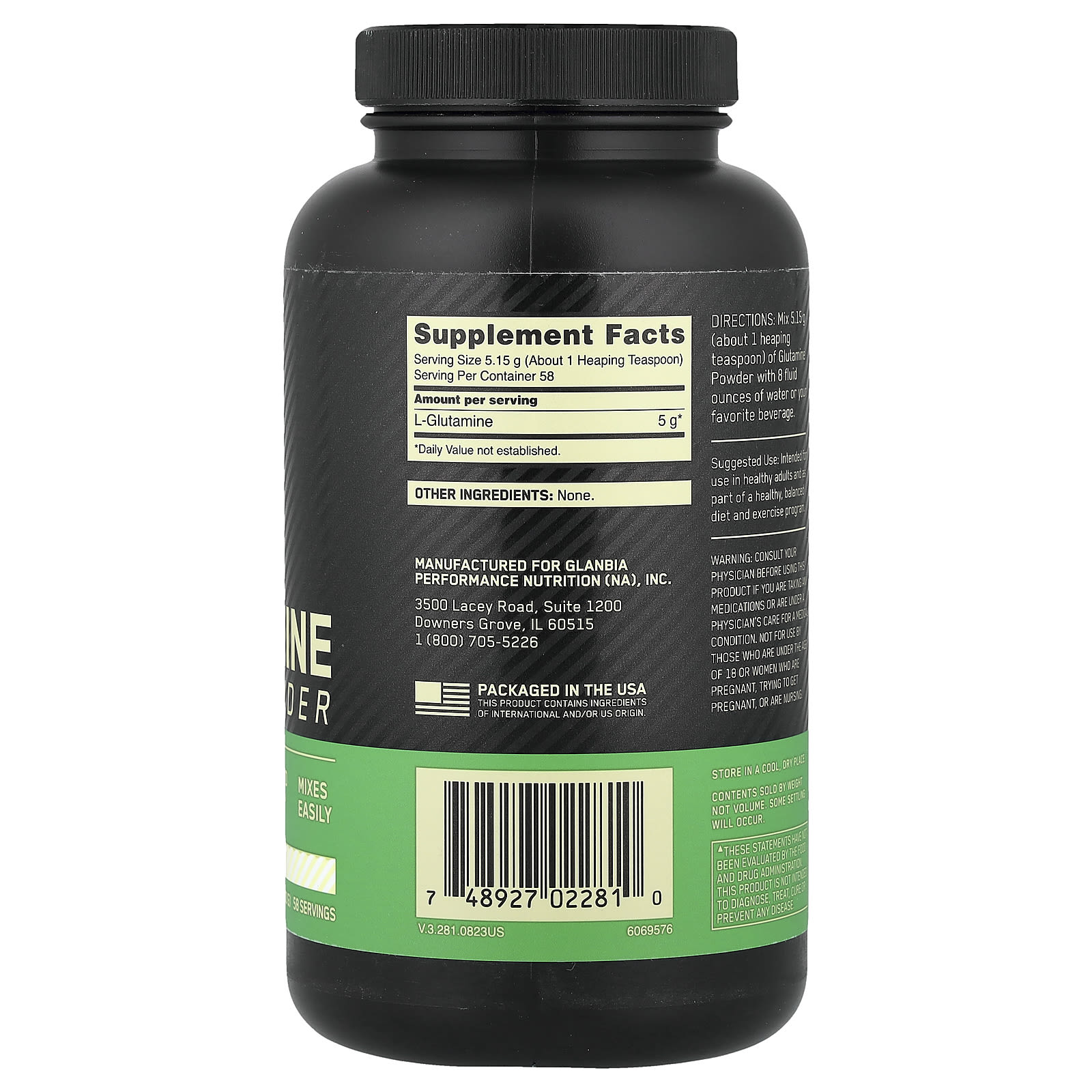 Глютамин — самая распространенная аминокислота, содержащаяся в организме, и она играет важную роль в мышечной ткани. Во время длительных периодов интенсивных тренировок уровень глутамина может снизиться, что ограничивает синтез белка. Наш глутаминовый порошок — это простой способ дополнить свой рацион этой аминокислотой. Одна чайная ложка содержит больше глутамина, чем 4 яйца Jumbo, 120 мл (4 унций) нежирной говядины или 120 мл (4 унций) куриной грудки. Поскольку он не имеет вкуса и легко смешивается, вы можете просто добавить его во фруктовый сок, протеиновый коктейль или свое любимое средство для набора веса.