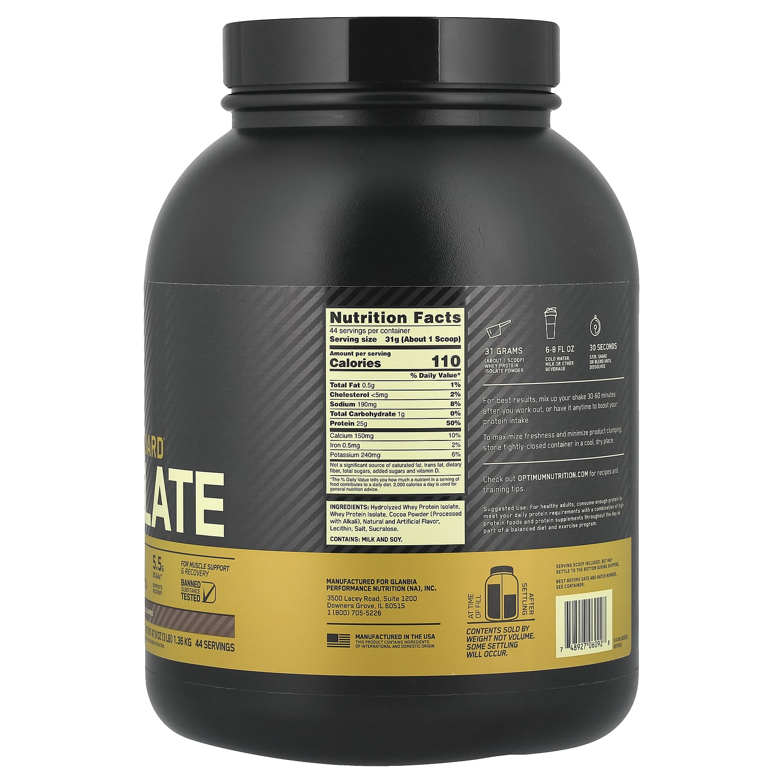 Благодаря ряду сложных процессов разделения излишки жира, холестерина, сахара и других материалов удаляются, так что в каждой порции GOLD STANDARD 100% ISOLATE™ остаётся 0,5 г жиров и 1 г углеводов.