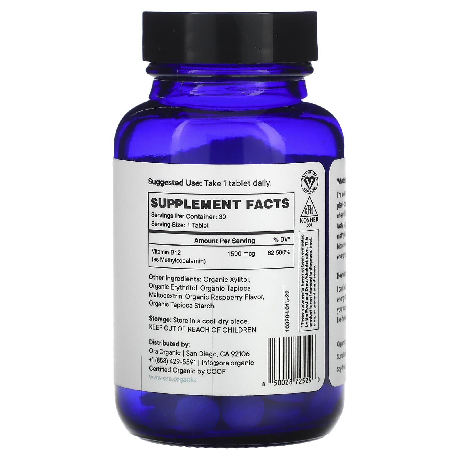 Я — сертифицированная органическая жевательная таблетка с витамином B12 на растительной основе, которая содержит вкусный заряд метилкобаламина без сахара, наиболее биоактивной формы этого вырабатывающего энергию питательного вещества.