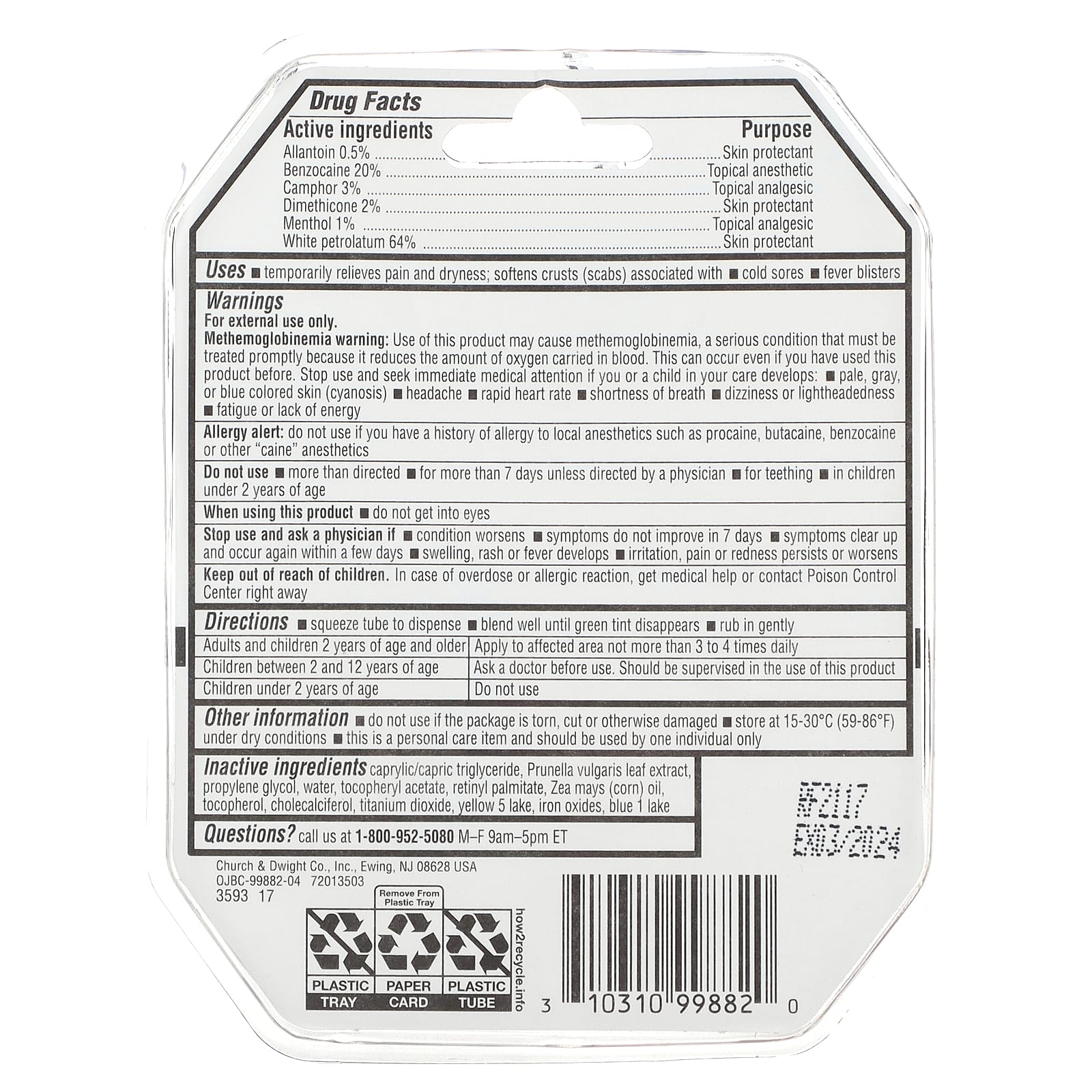 Methemoglobinemia warning: Use of this product may cause methemoglobinemia, a serious condition that must be treated promptly because it reduces the amount of oxygen carried in blood. This can occur even if you have used this product before. Stop use and seek immediate medical attention if you or a child in your care develops: